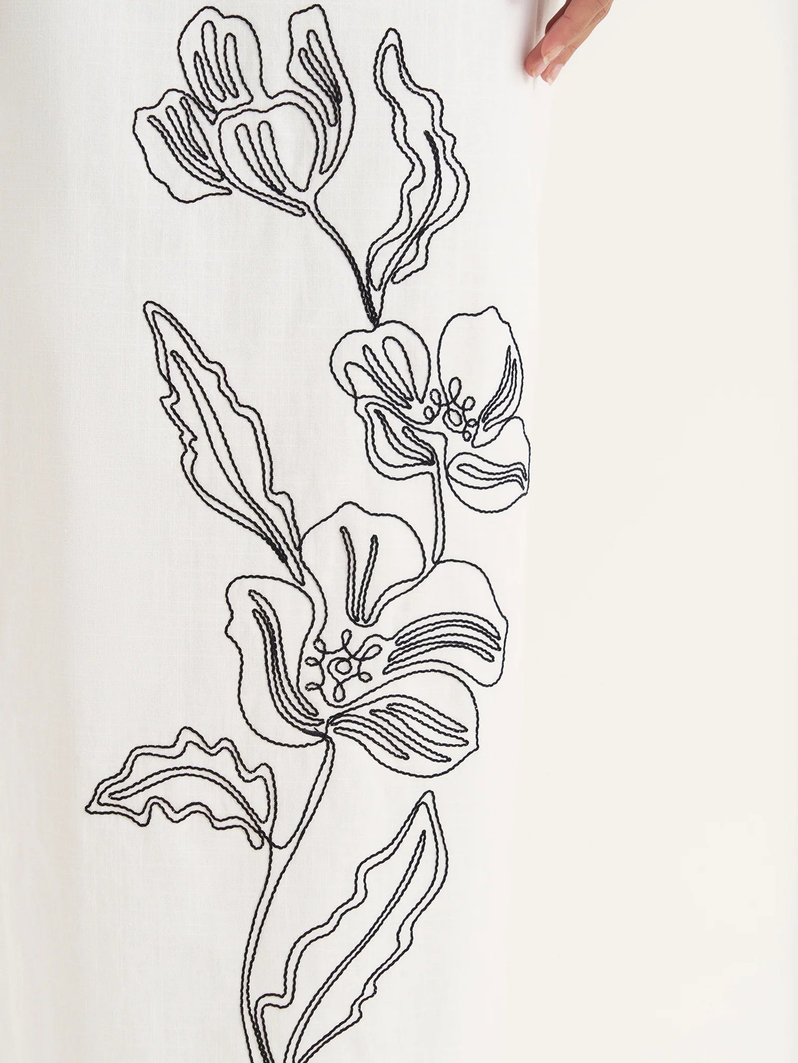 The Alondra Skirt by 4th & Reckless is crafted from breathable cotton and features delicate floral embroidery and a lined, structured fit.