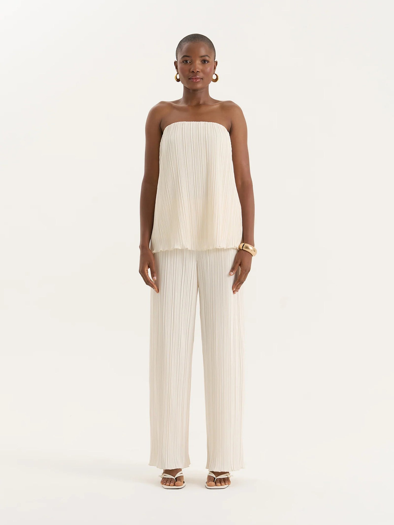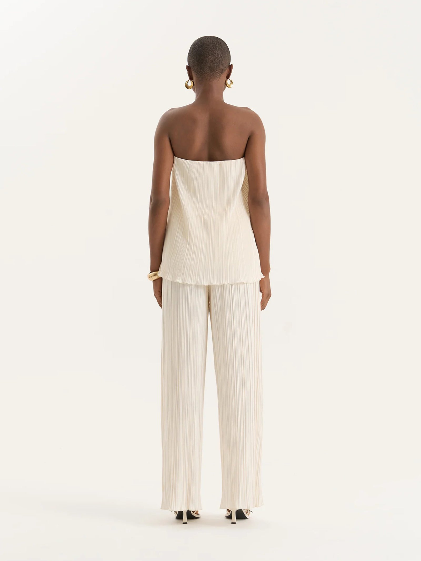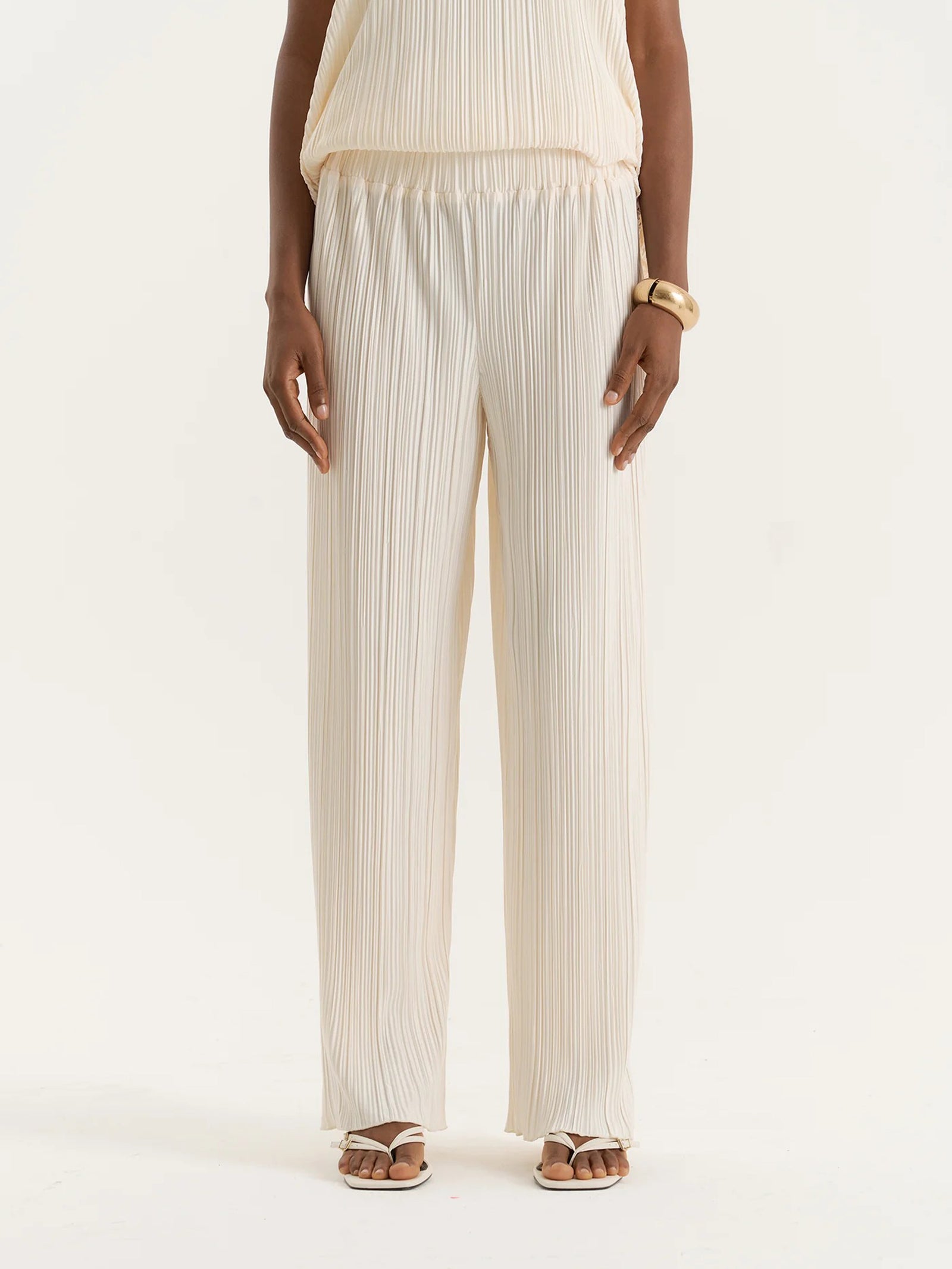 The Olivia Trousers by 4th & Reckless is cut from lightweight plissé fabric. These trousers feature a high-rise elasticated waist and a fluid wide-leg silhouette.