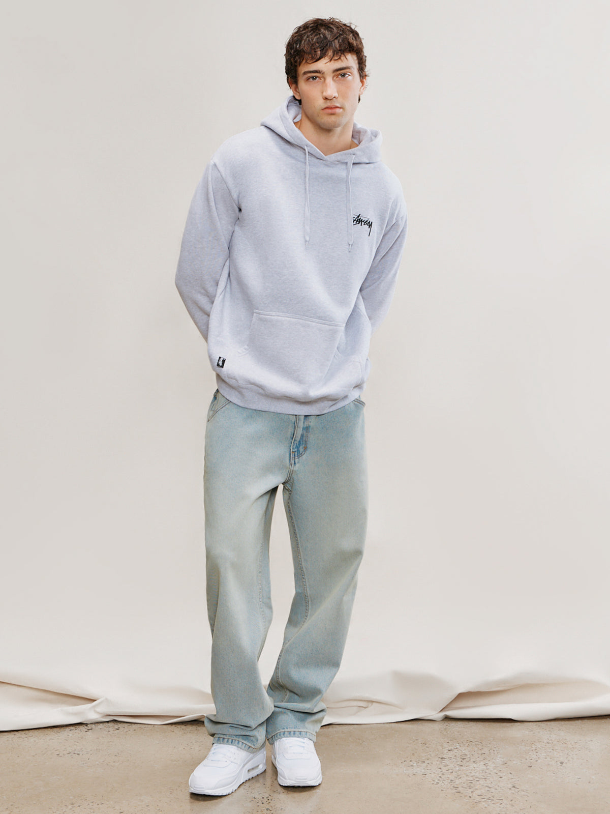 Constructed from 100% cotton using durable, rigid denim. Features a button closure and five spacious pockets, including a brand logo on the back right pocket. Designed with a straight leg silhouette and stackable with sneakers, these jeans provide a light worn look and are the perfect addition to any daily wardrobe.