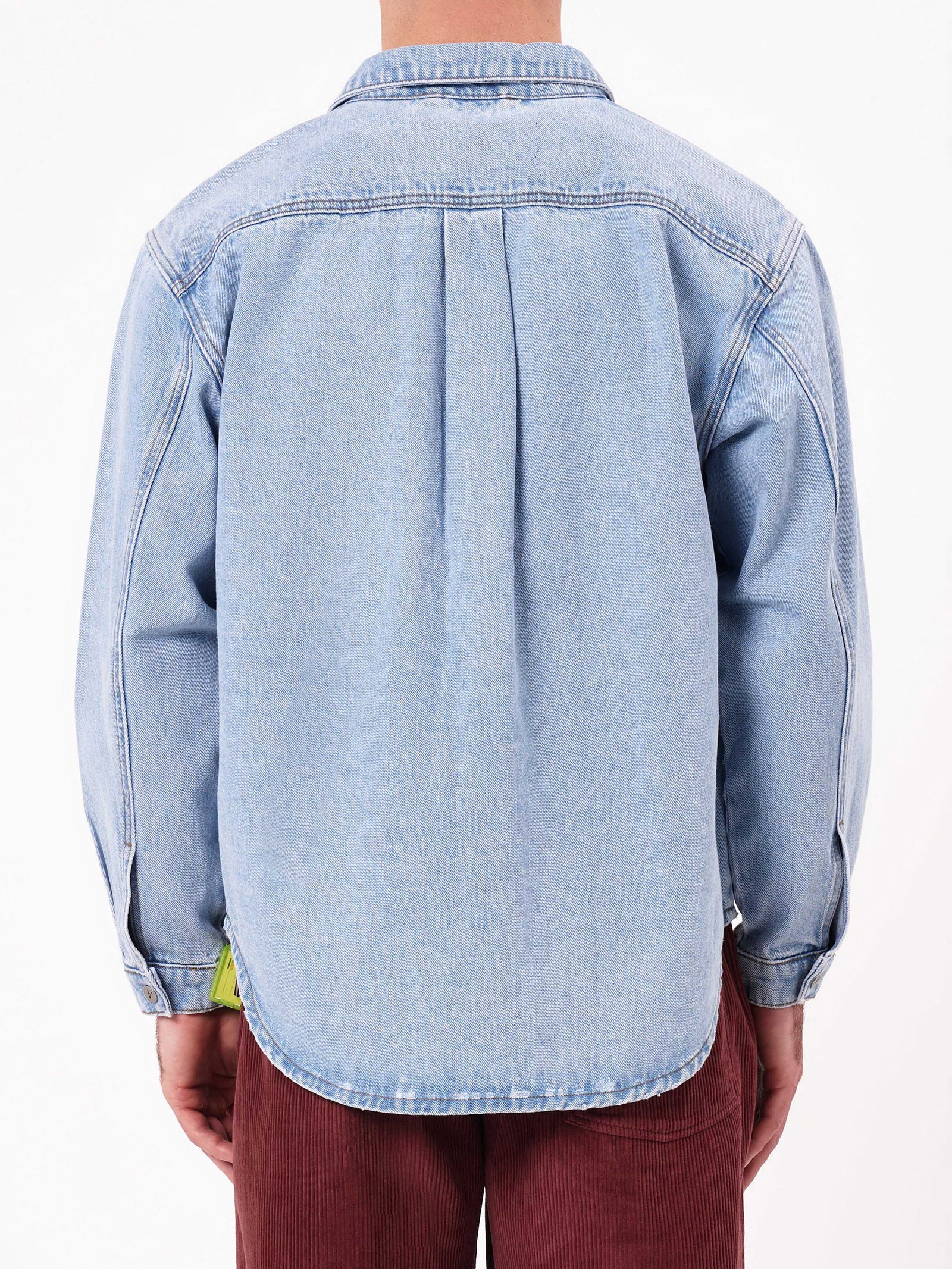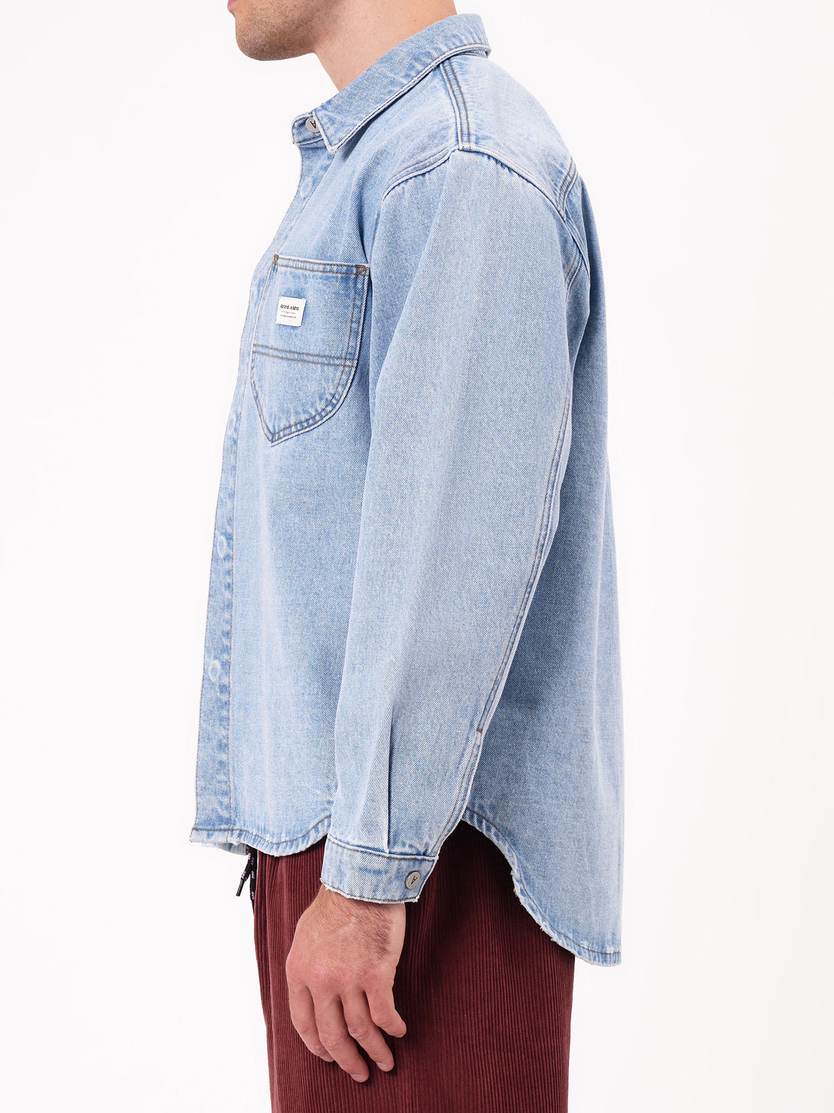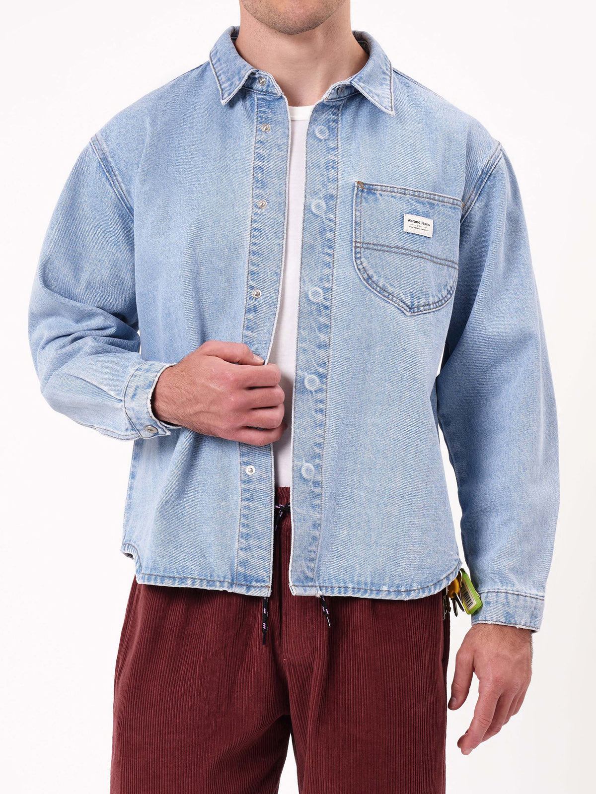 Effortlessly stylish and versatile, the A5 Shacket John is the perfect combination of casual and sophisticated. With a relaxed fit and classic shirt styling, this piece is suitable for any occasion. Complete the look with a pair of denim jeans for the perfect double denim ensemble. The light blue shade, single chest pocket, and black buttons add subtle details to this must-have piece. Stay on trend with the Abrand trade label and curve hem.