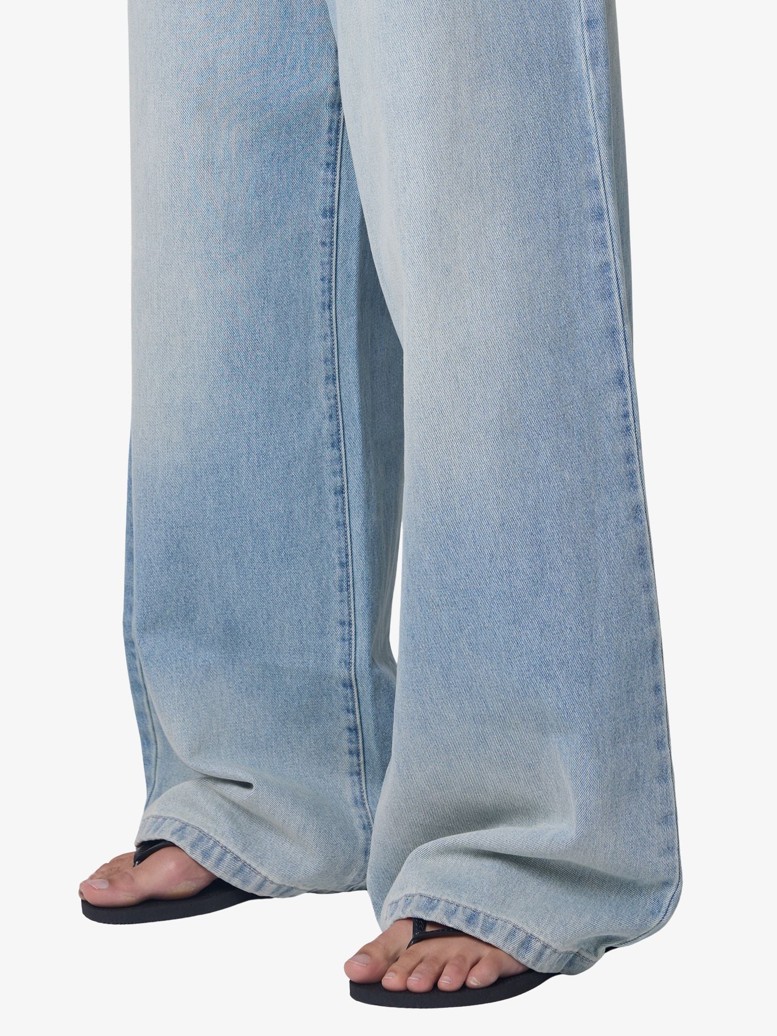 The 99 Mega Baggy Brittney Jeans by Abrand feature an oversized fit with wide legs and a washed finish. Designed with a dropped crotch and classic five-pocket styling, they deliver effortless Y2K-inspired streetwear.