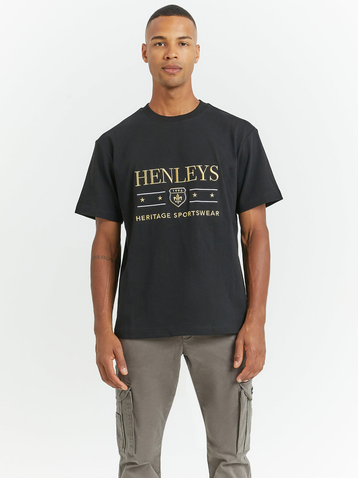 Sizing: This t-shirt is a regular fit and our model is wearing a Large.