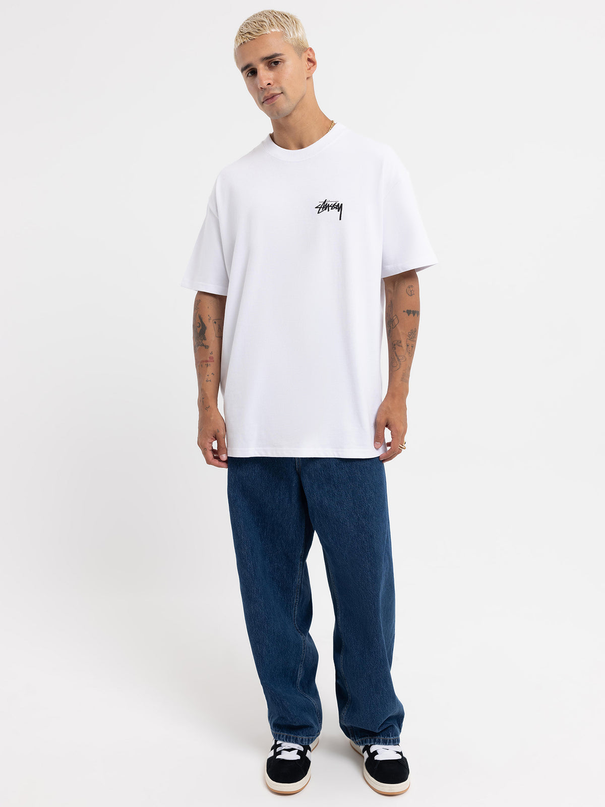 The Ace Heavyweight Short Sleeve T-Shirt is perfect for those seeking comfort and style. Made from a cotton-rich heavyweight fabric, this t-shirt offers a regular fit that is both comfortable and flattering. The bold graphic Stussy logo and text add a touch of edgy style, while the graphic design feature on the back of the garment sets it apart from traditional t-shirts. Upgrade your wardrobe with this must-have piece.