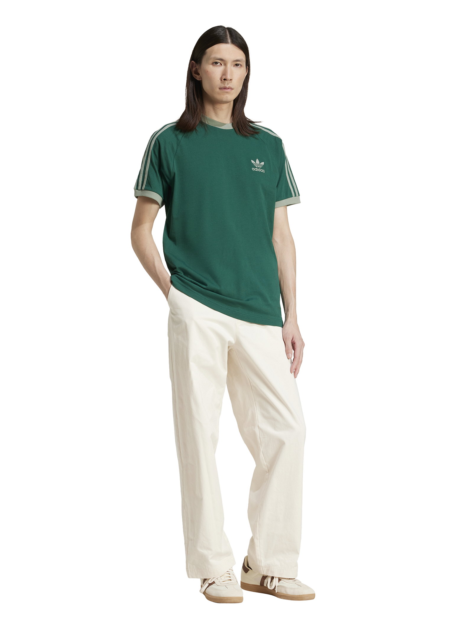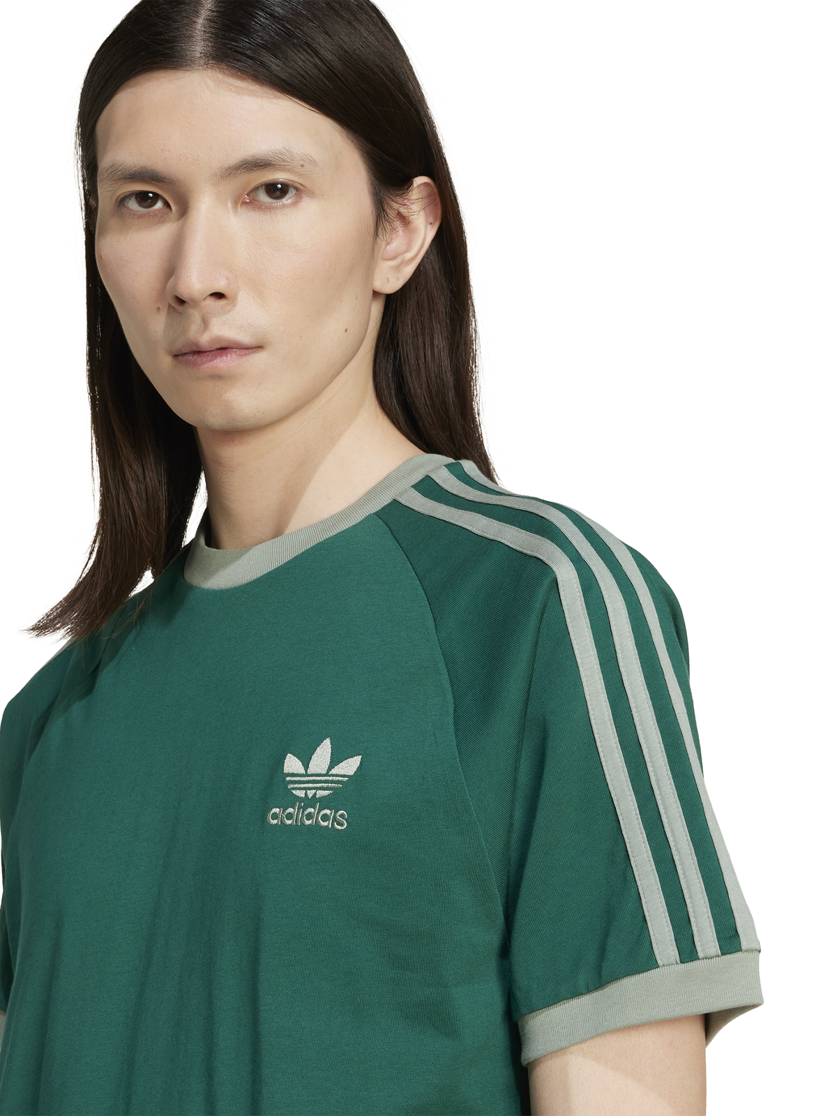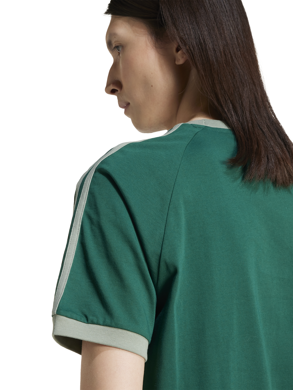 The Adicolor Poly Tee in Collegiate Green by Adidas features ribbed trims and contrast hems. This tee is designed in soft cotton for comfort and casual polish.