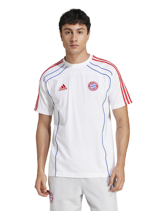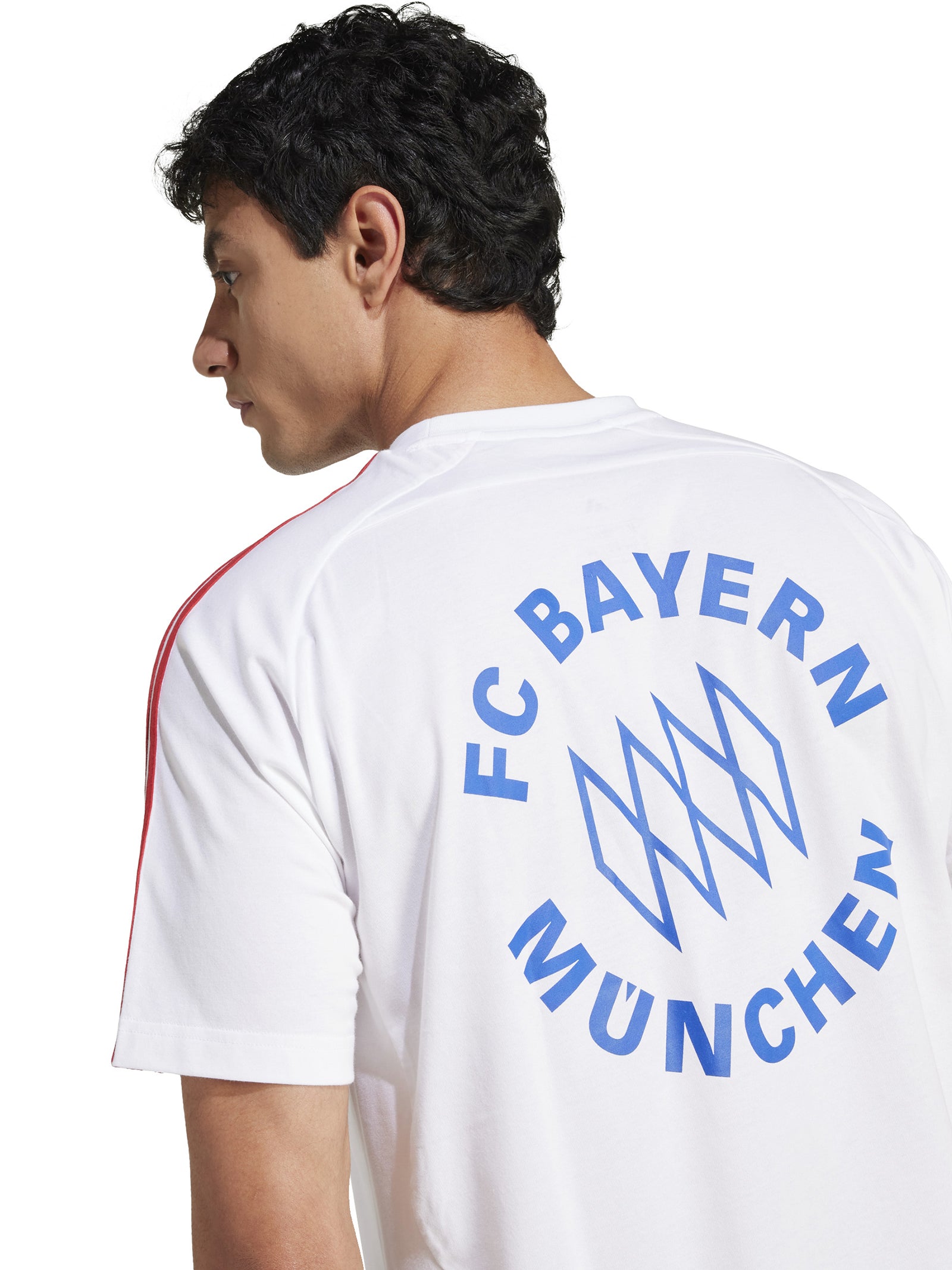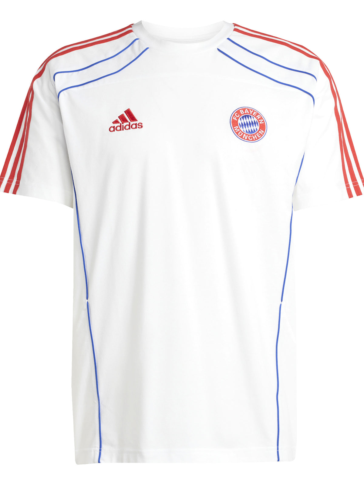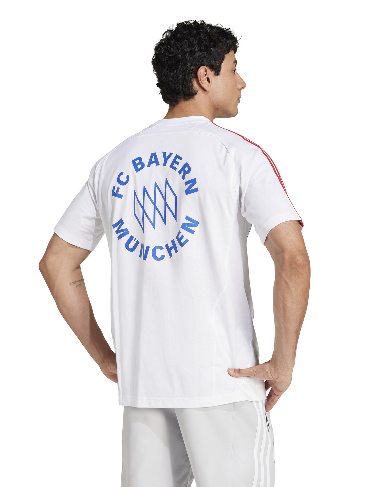 The FC UBP Tee in White by Adidas showcases embroidered logos, sleeve piping, and the iconic 3-Stripes. This tee is made with a sustainable blend of recycled and renewable materials.