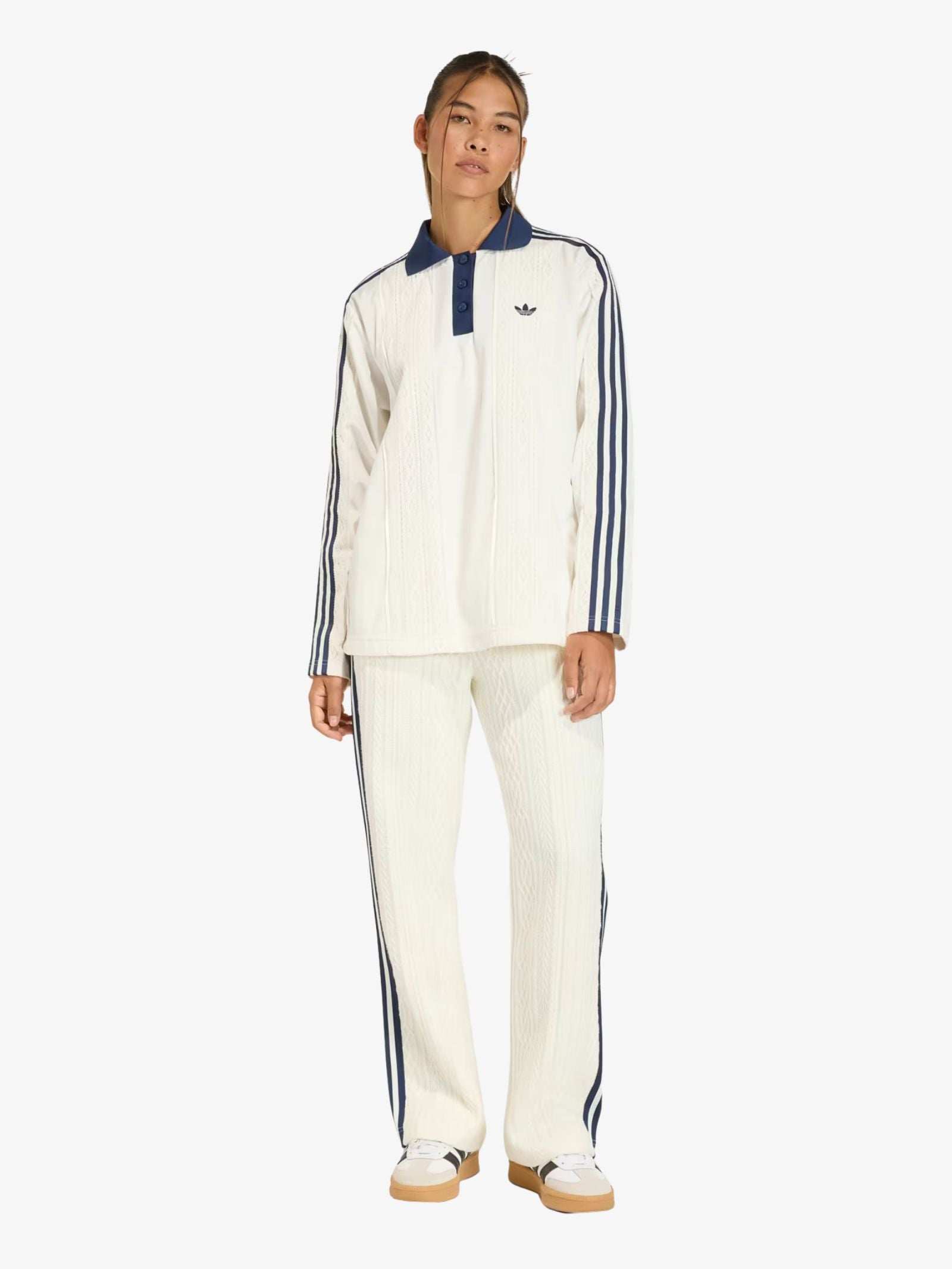 The Adidas Originals Winterised Longsleeve Soccer Jersey blends classic football heritage with cold-weather comfort. Designed with a mix of velour and crochet fabric, it delivers a soft, textured feel while helping keep you warm during cooler days. The oversized fit creates a relaxed silhouette that allows easy movement on or off the pitch. Finished with iconic Trefoil embroidery and signature 3-Stripes tape, this jersey celebrates adidas’ sporting legacy with a modern winter-ready twist.