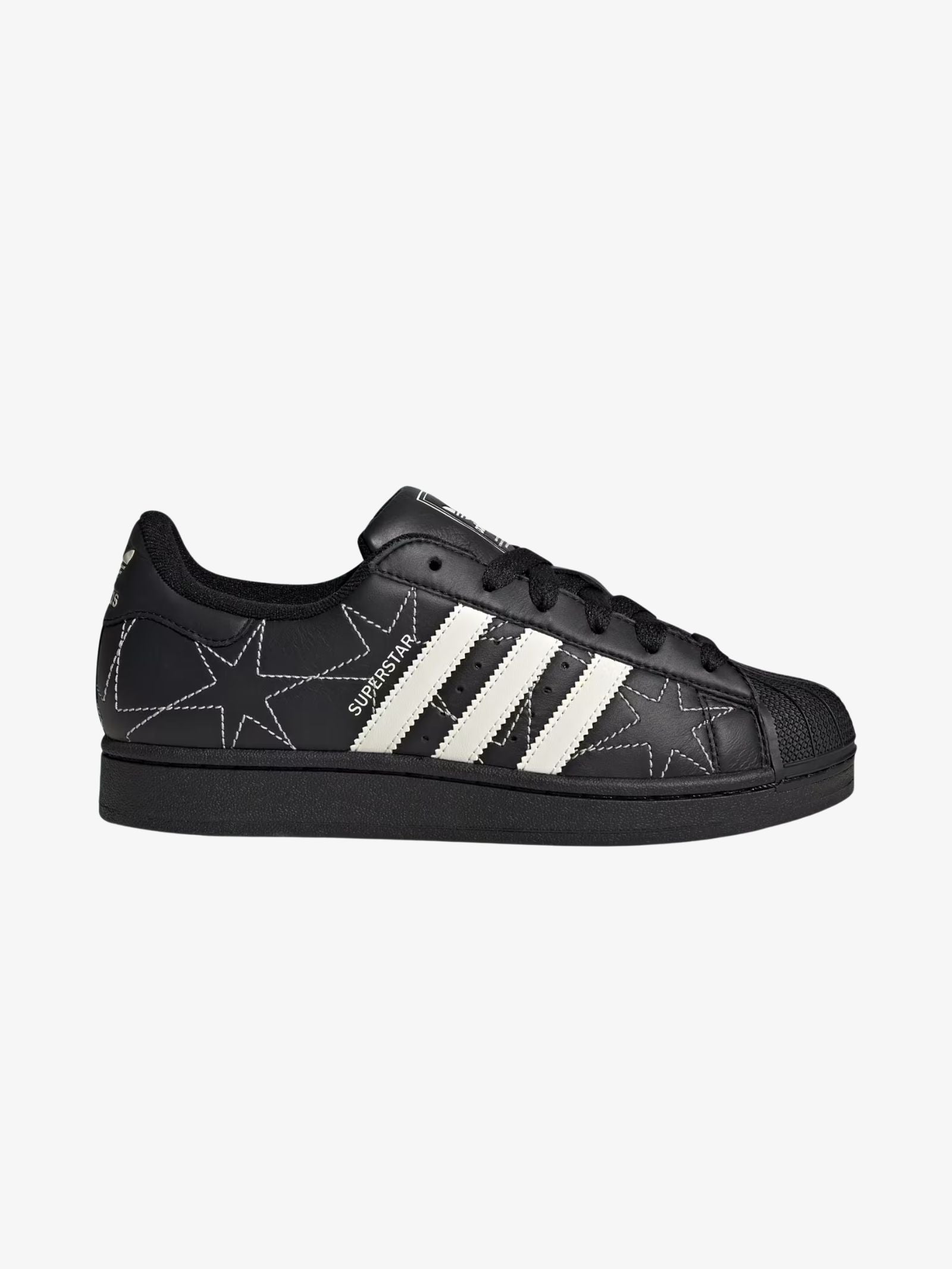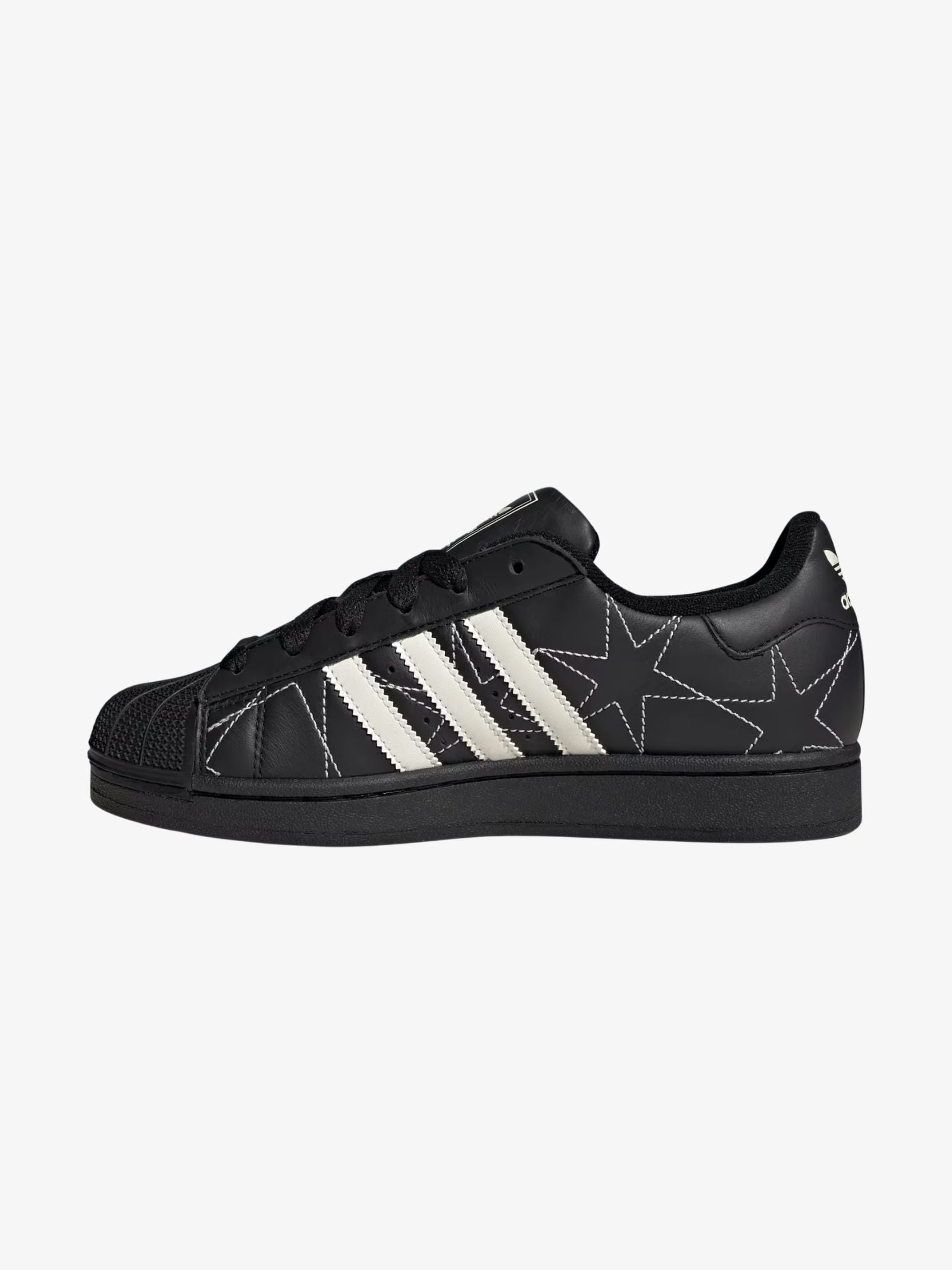 The Women's Superstar II Shoes by Adidas are reimagined streetwear sneakers that retain the brand's iconic shell toe and serrated stripes. These shoes feature a leather upper decorated with stitched star patterns and a Trefoil branded heel tab.