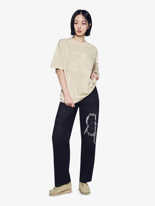 The Bear Applique Pigment Washing Short Sleeve T-Shirt by ADLV is crafted from premium cotton. This tee features a relaxed fit, a unique pigment-washed and a bold bear applique on the front.