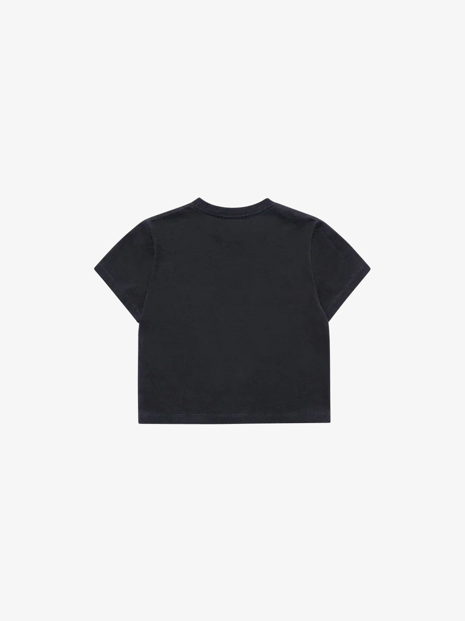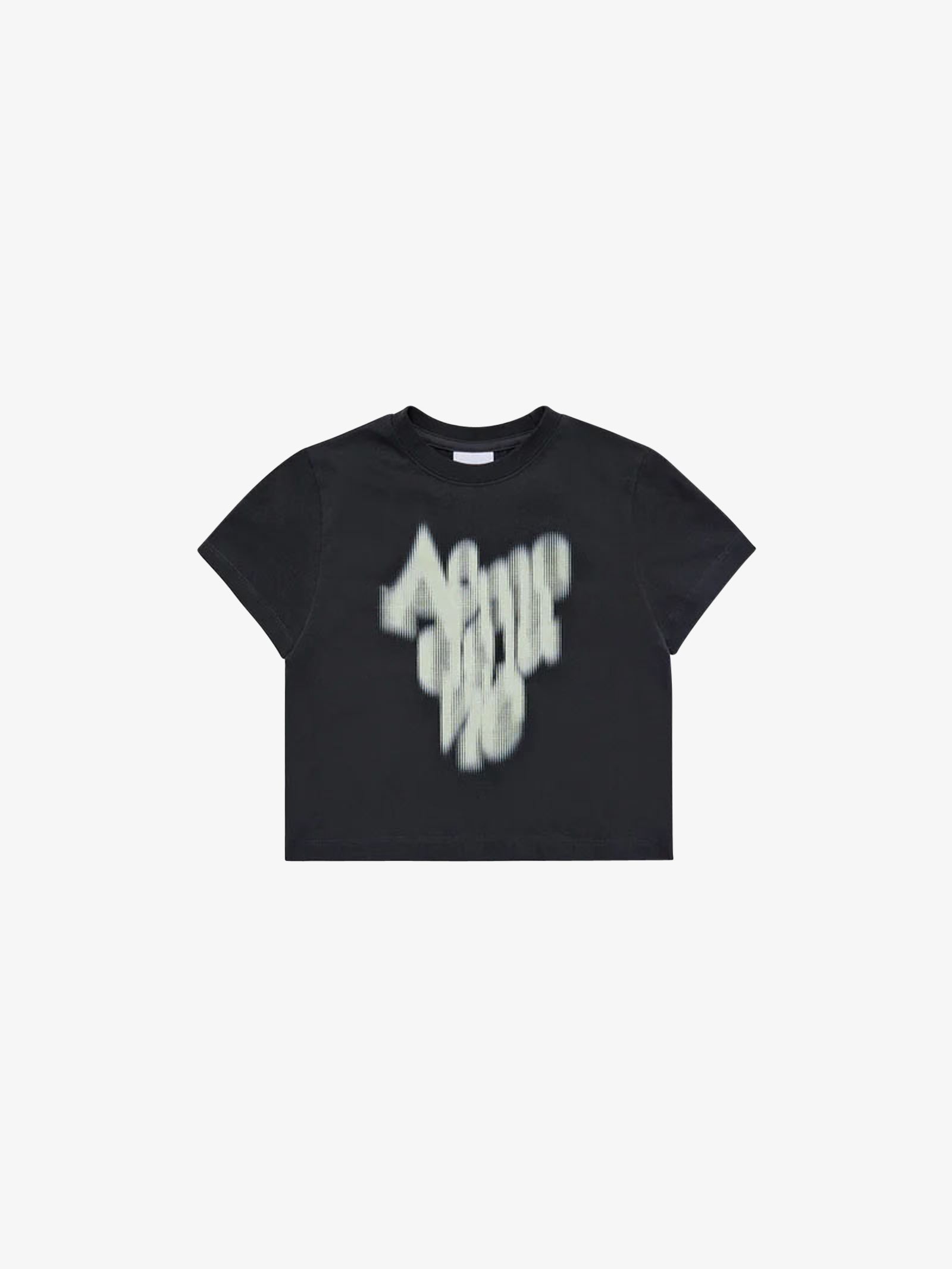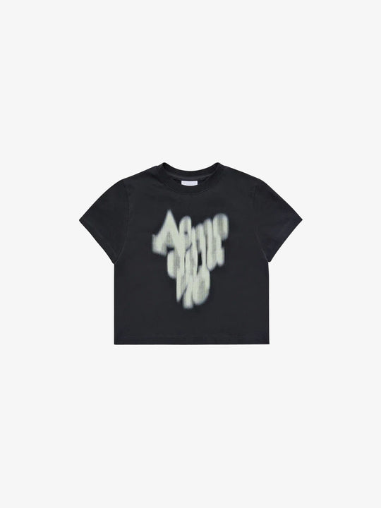 The Blur Logo Crop Short Sleeve T-Shirt by ADLV is designed with a cropped silhouette. This tee features a classic crewneck and a bold graphic print at the chest.