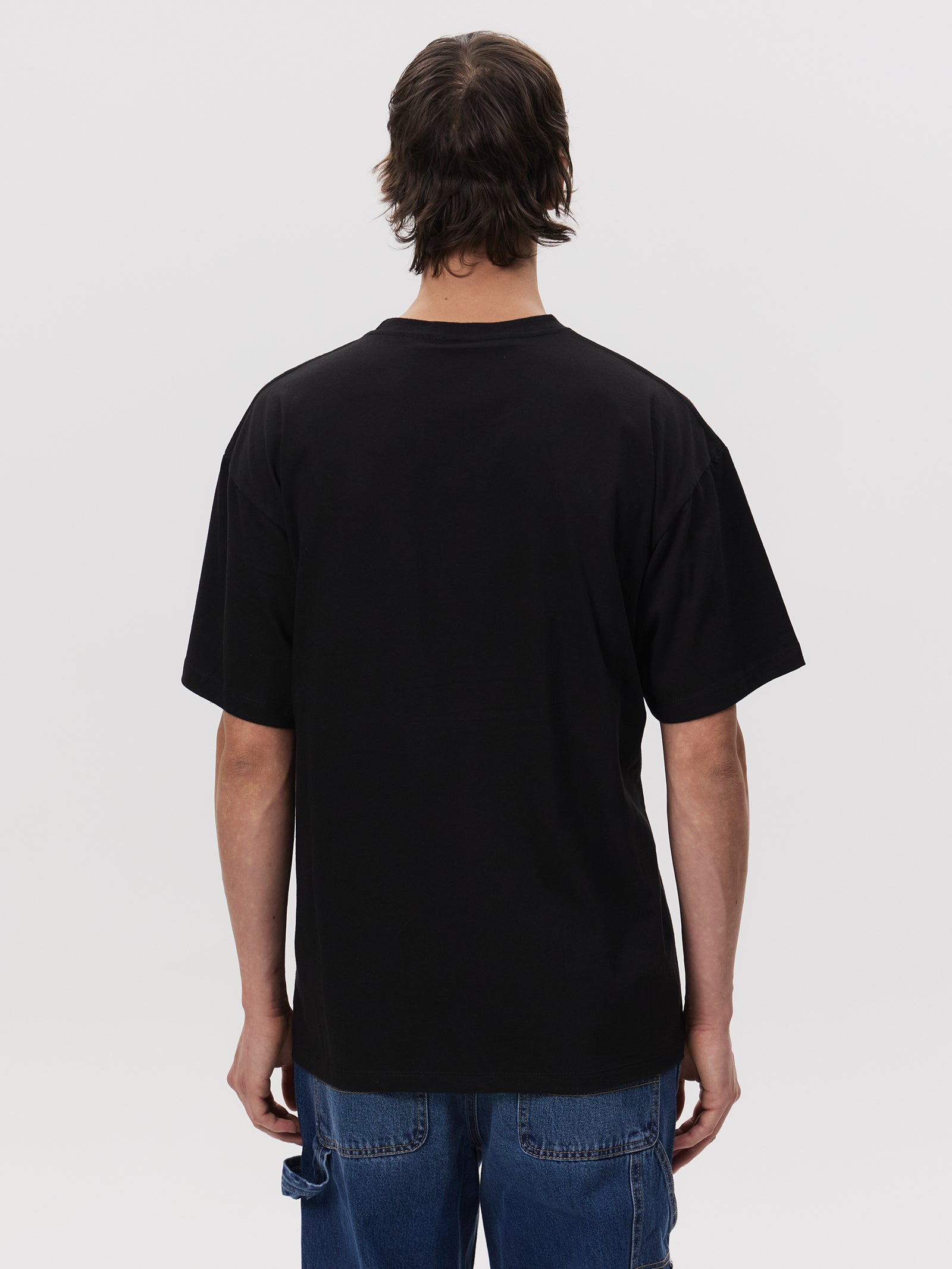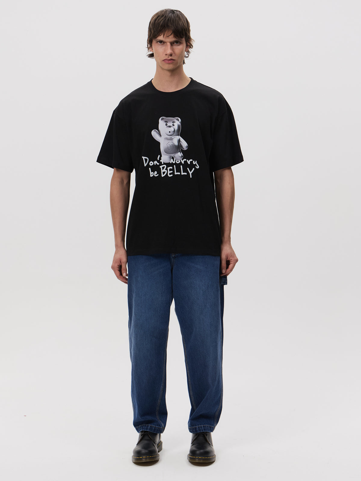 The Metal Belly Short Sleeve T-Shirt by ADLV is designed with an oversized fit. This tee features a classic crewneck silhouette with a striking chest graphic.
