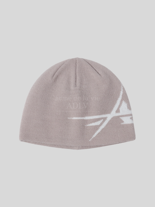 The One Point Artwork Beanie by ADLV is crafted from stretchable knit fabric and features a subtle yet striking abstract graphic or logo on the side.