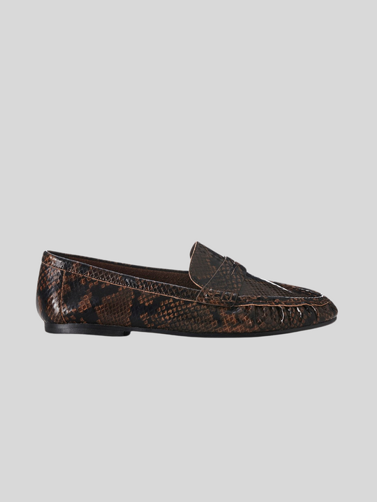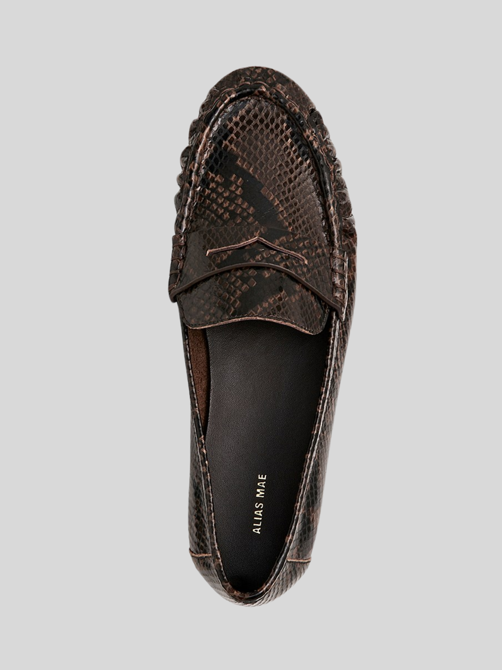 The Ivana Loafer in Choc Snake by Alias Mae is crafted from soft, supple 100% leather, both upper and lining. This loafer offers a rich brown finish and designed in Australia.