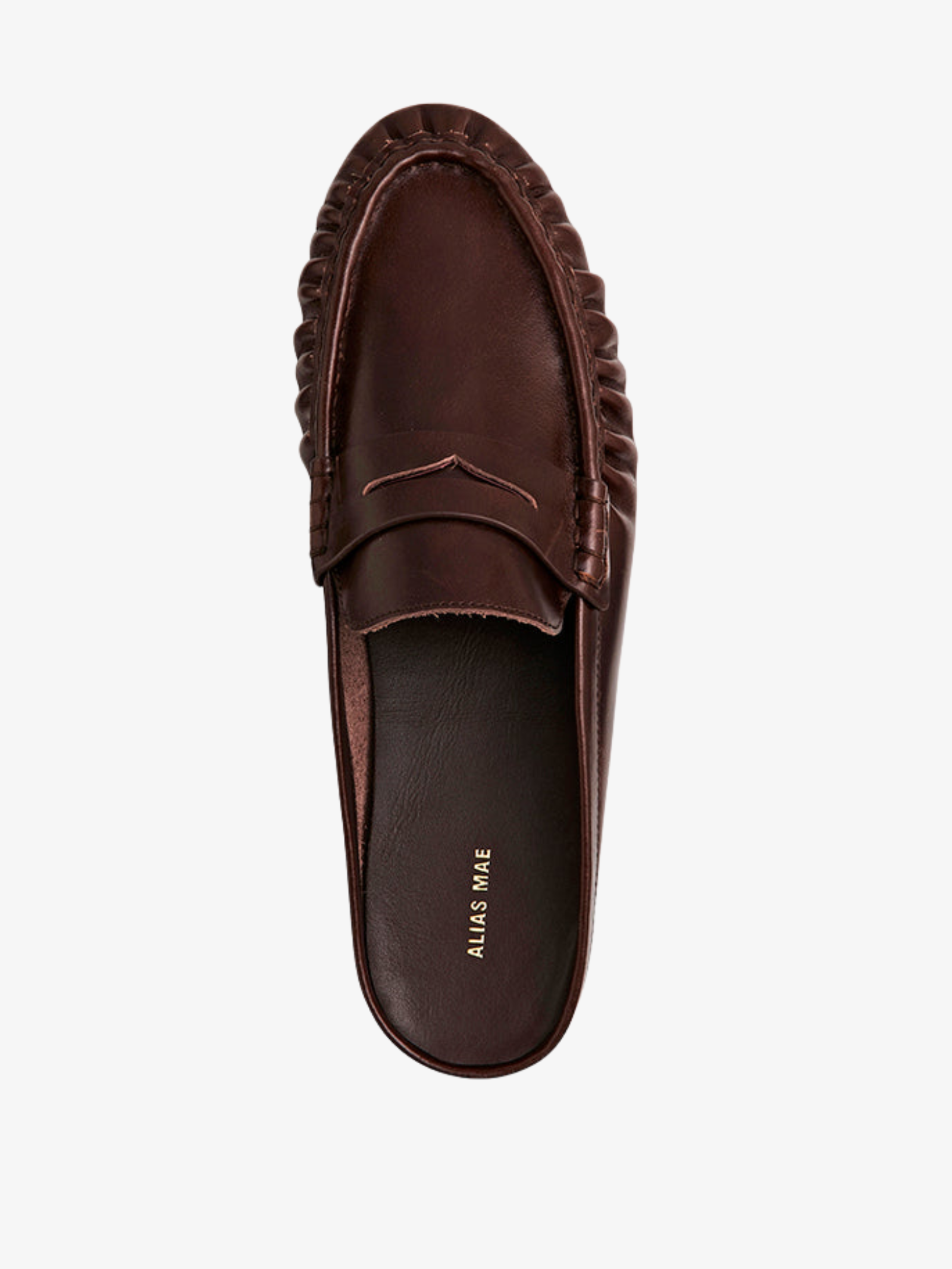 The Ivy in Walnut Wax by Alias Mae is crafted from premium waxed leather and features a softly squared toe and a block heel for both elegance and wearability.