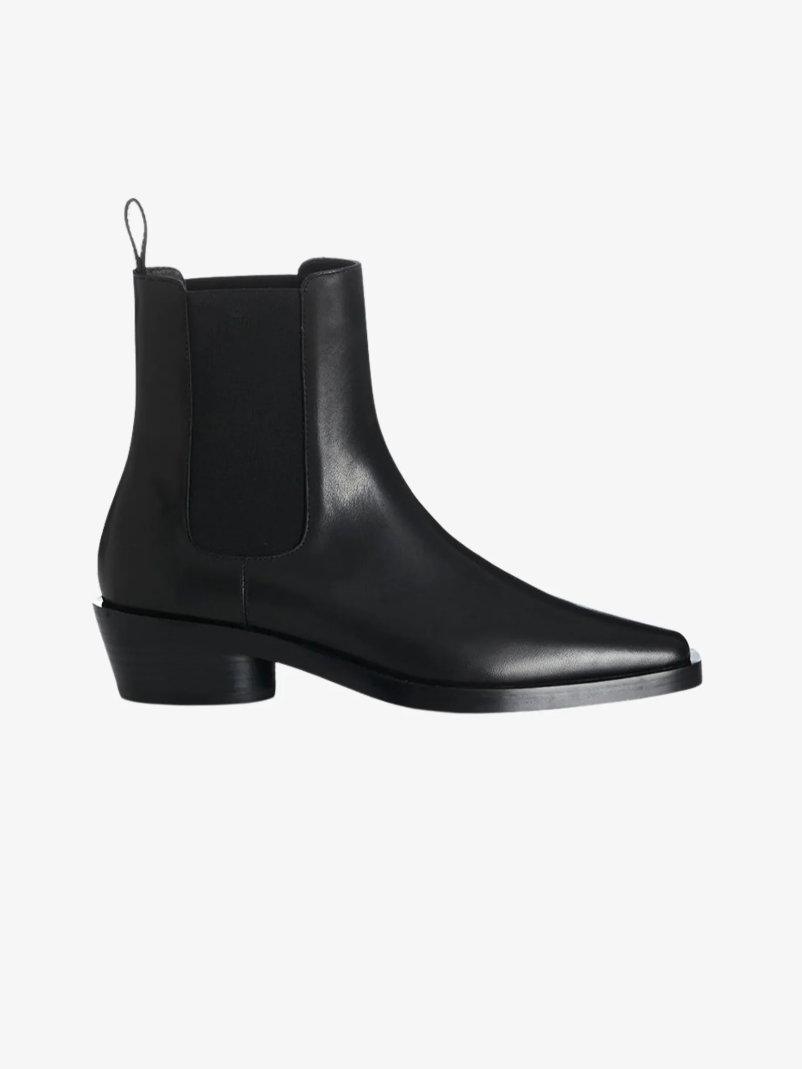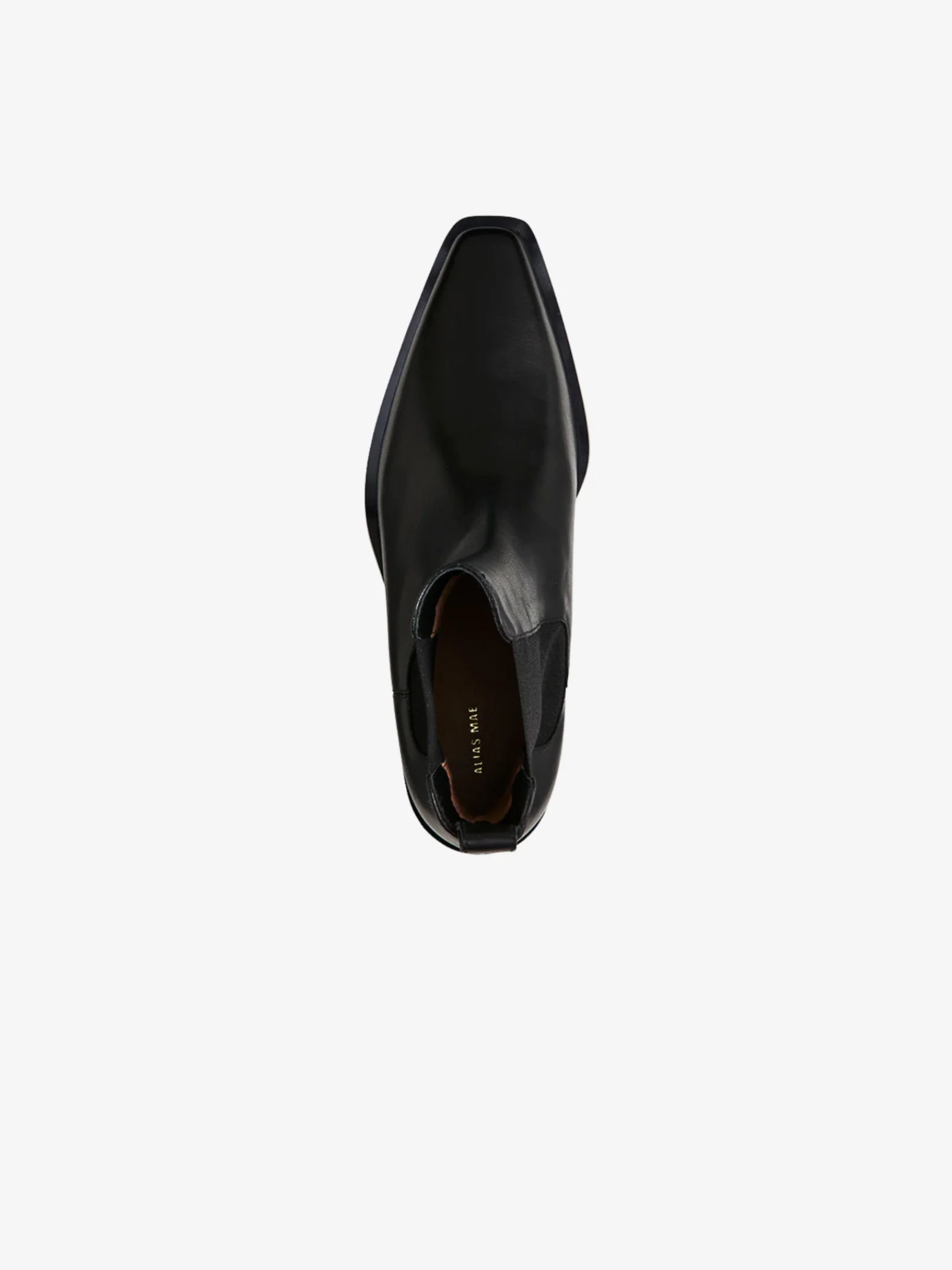 The Remy Boot in Black Leather by Alias Mae is crafted from 100% leather for both the upper and lining. This pull-on boot features a sleek elastic gusset and a practical rear pull tab.