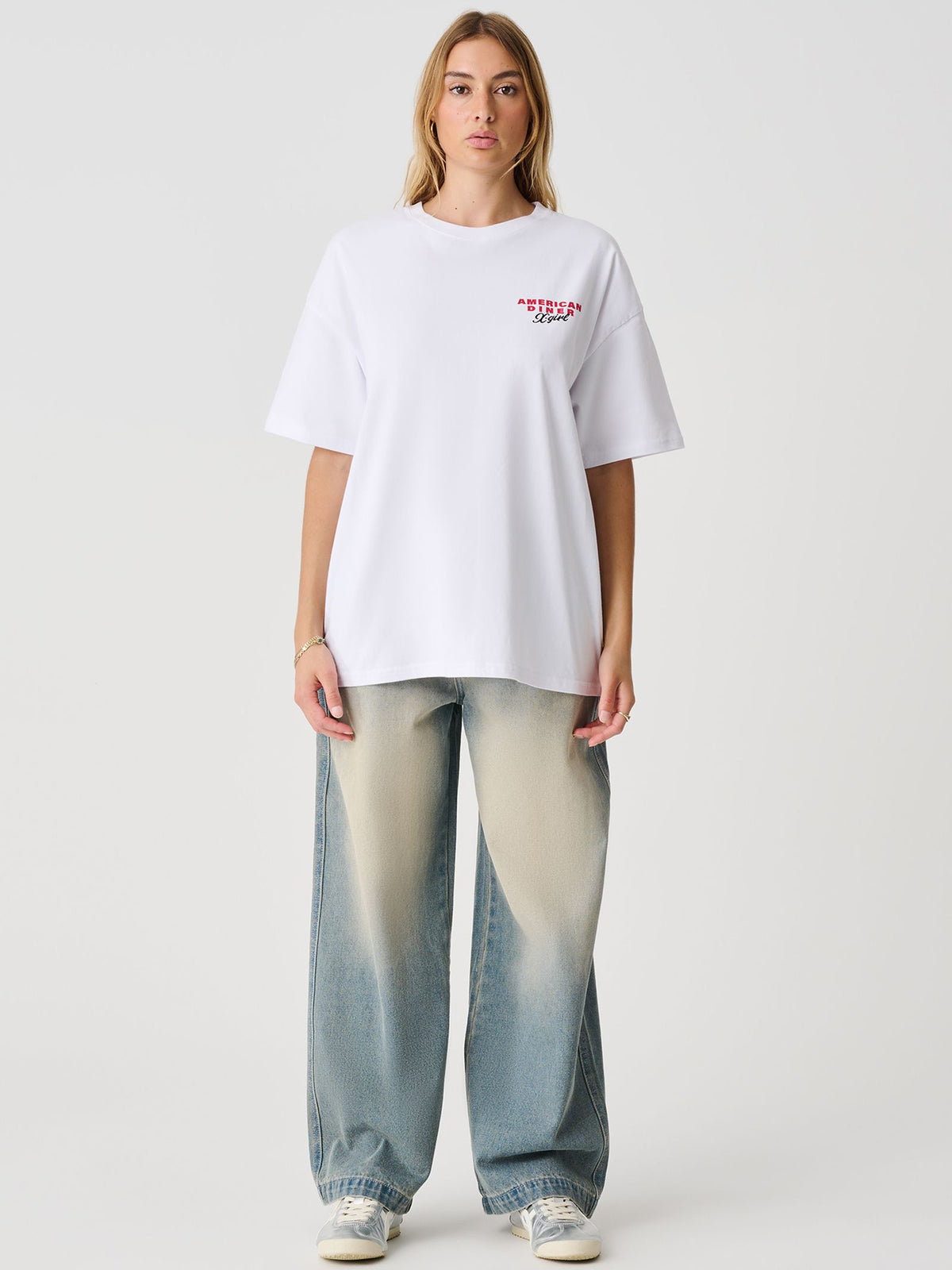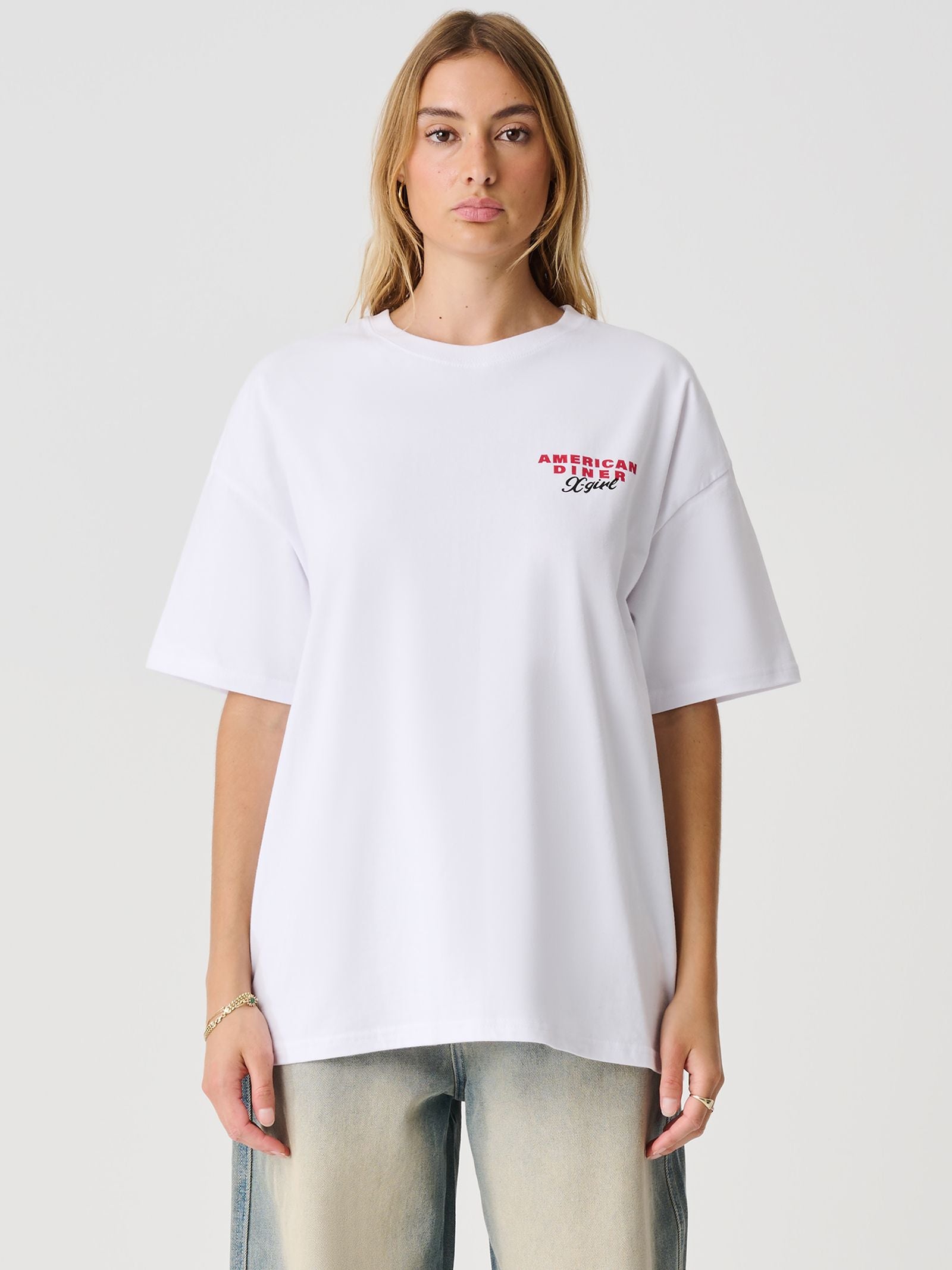 This American Diner Relaxed T-Shirt is perfect for those who appreciate comfort and style. Featuring short sleeves and a graphic print on the front and back, this t-shirt is perfect for casual wear. The branding on the left chest adds to the overall trendy vibe of this shirt.