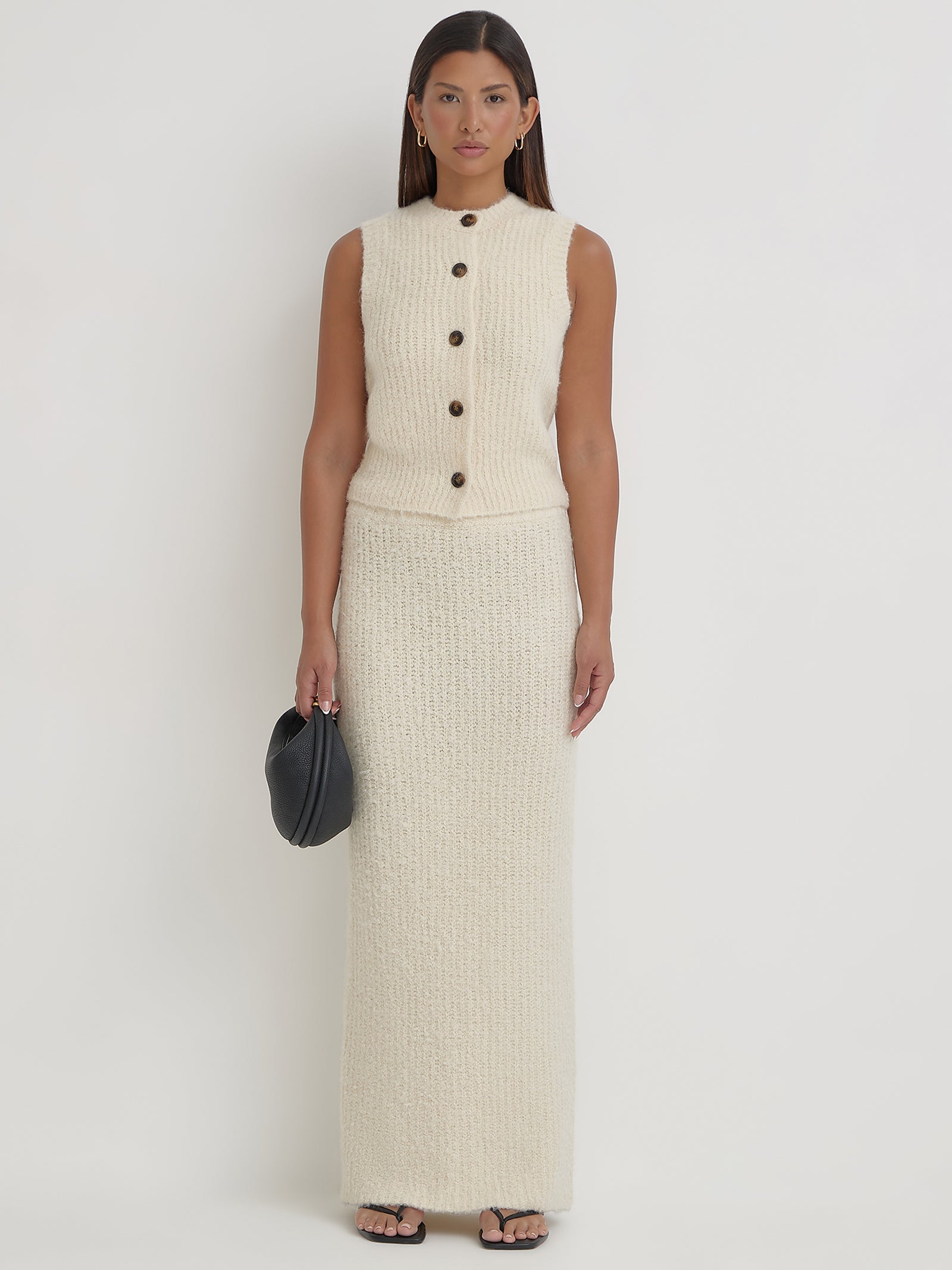 Curate your summer-spring wardrobe with the Anine Skirt. Featuring a high-waisted fit and a knit fabrication with moderate stretch, this skirt is fitted at the waist and hips, allowing for a sleek and straight fit through the legs. Its classic design adds a timeless touch to any ensemble.