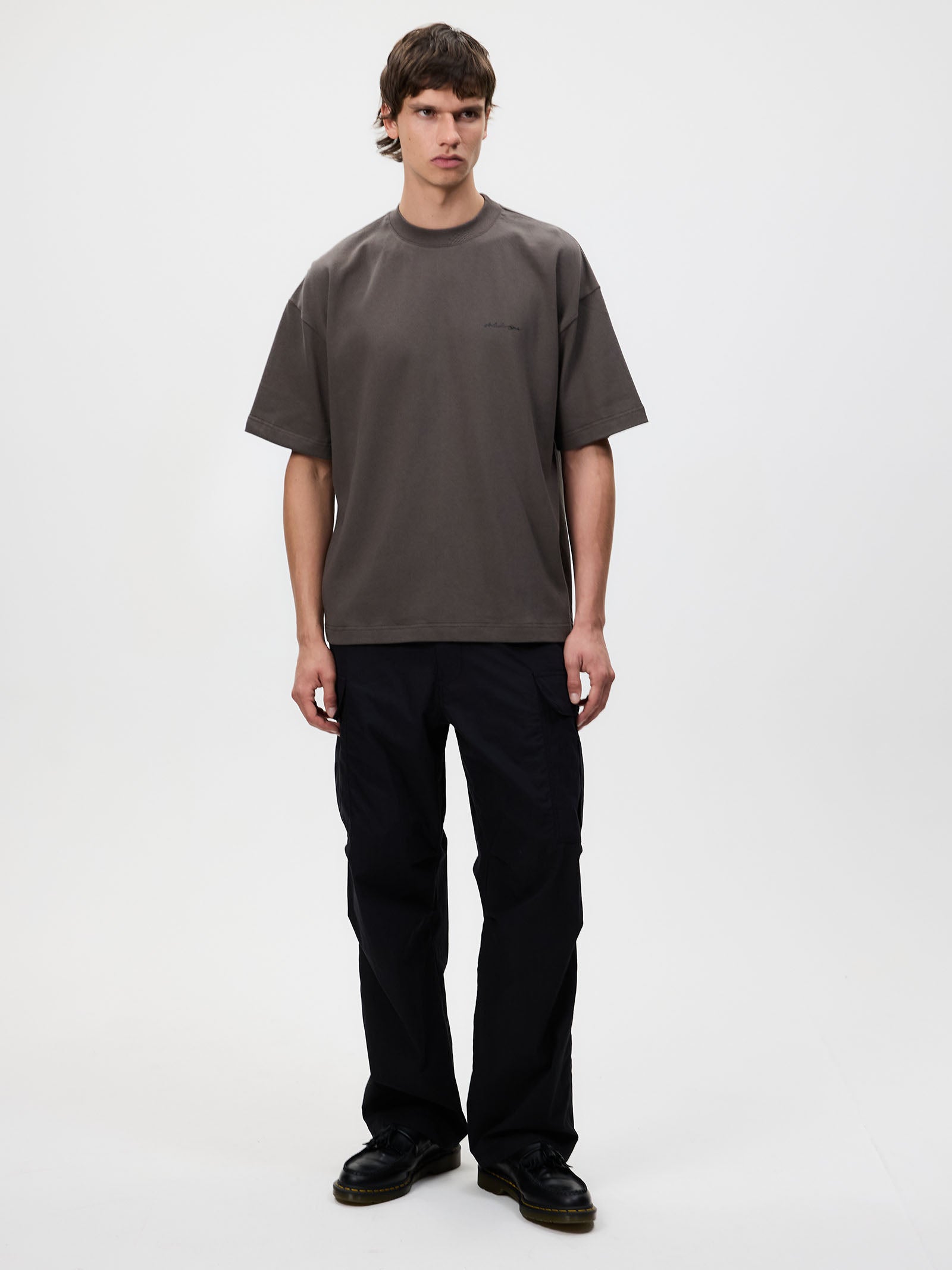 The Tuscany Tee in Washed Black by Article One is crafted from premium 100% cotton. This tee offers an oversized fit and ribbed crew neckline.