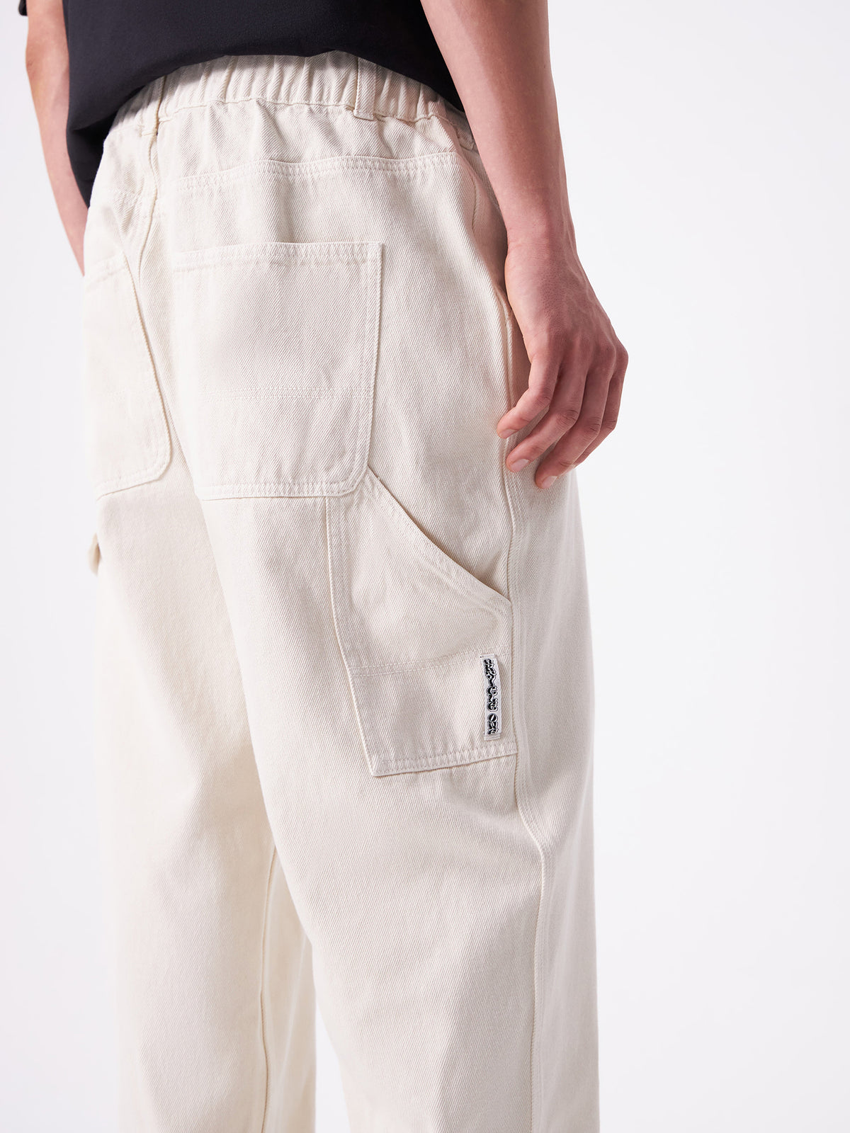 The Bentley Carpenter Pant in Ecru by Article One is designed with a relaxed fit and an elasticized waistband. These pants offer all-day comfort with a clean, refined aesthetic.