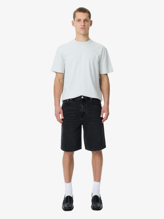 The Bertie Jean Short in Washed Black by Article One is designed with a relaxed fit and longer length. This denim short features a washed black finish, minimal hardware and tonal stitching.
