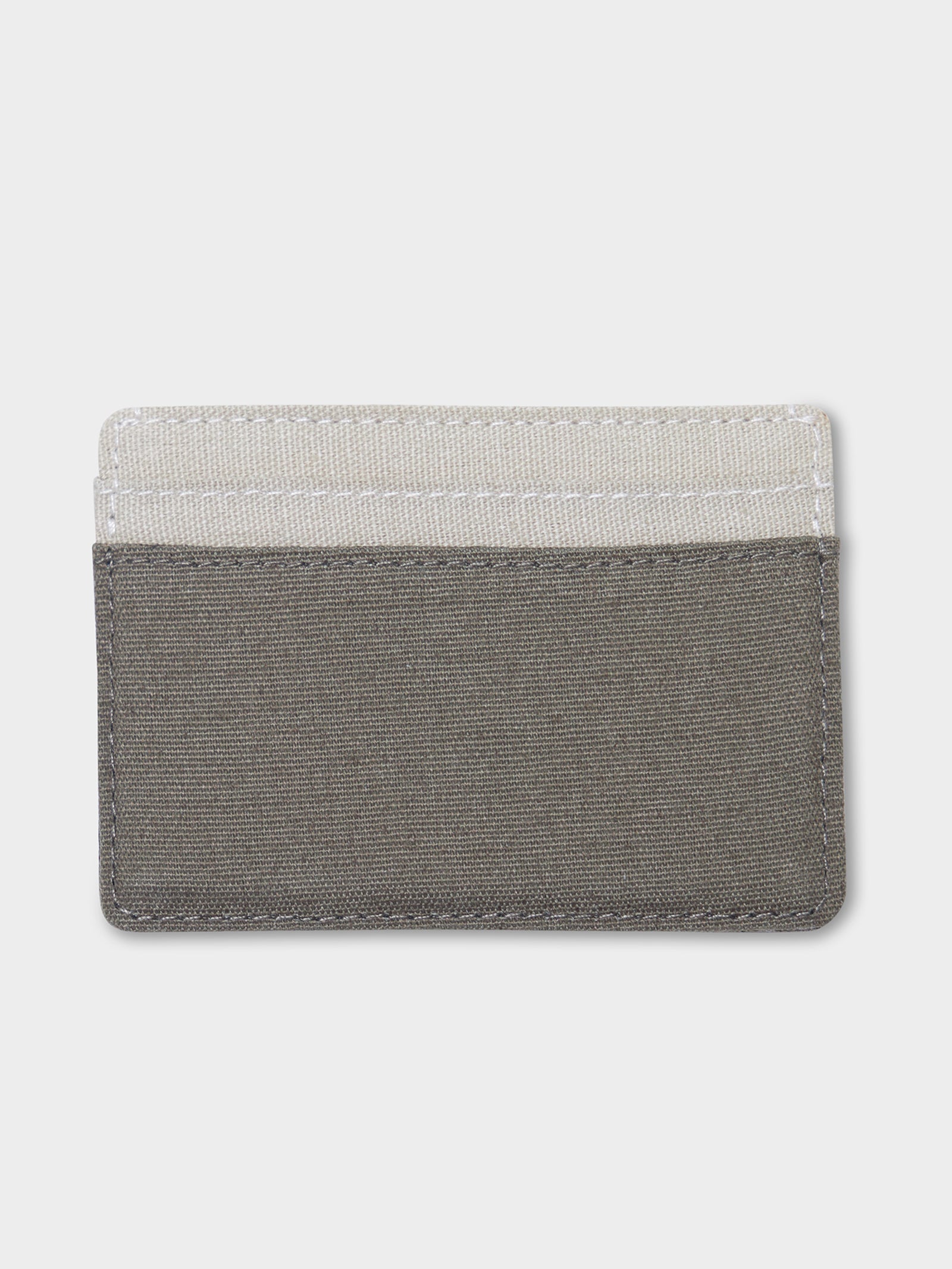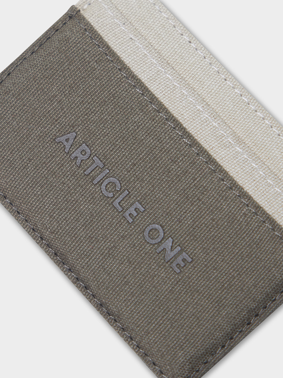 The Card Holder in Olive/Tan by Article One features a bold front print logo and minimal design. The middle compartment offers just the right amount of space for your cards and cash.