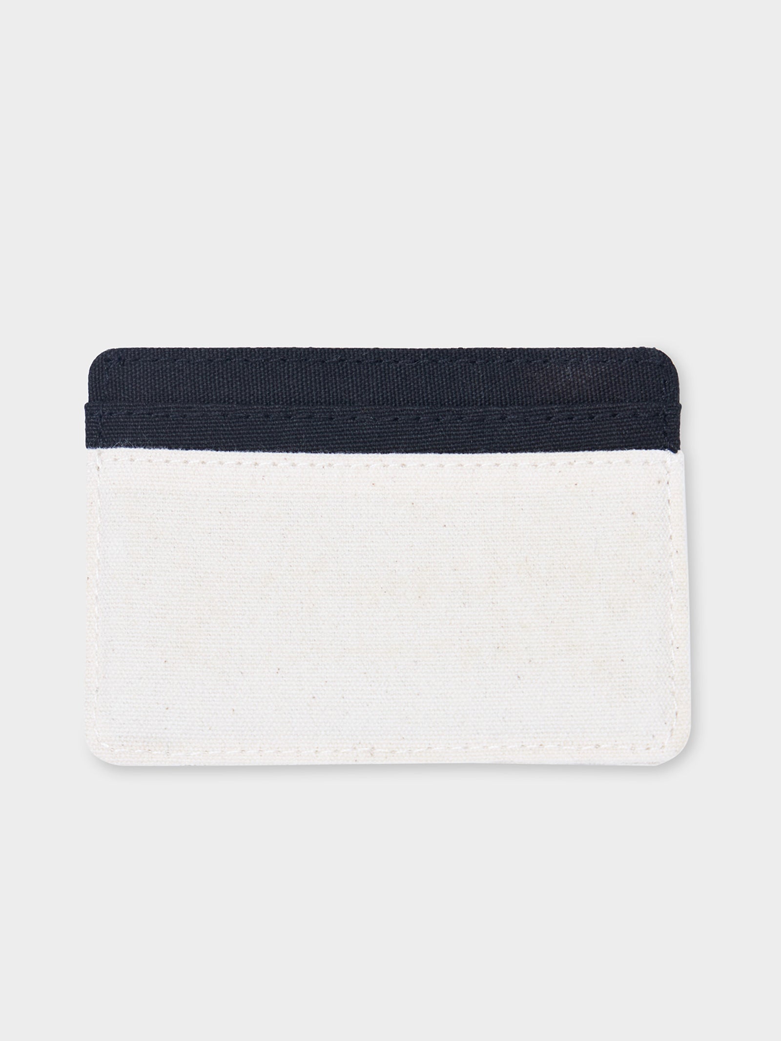 The Card Holder in Natural/Black by Article One features a bold front print logo and minimal design. The middle compartment offers just the right amount of space for your cards and cash.