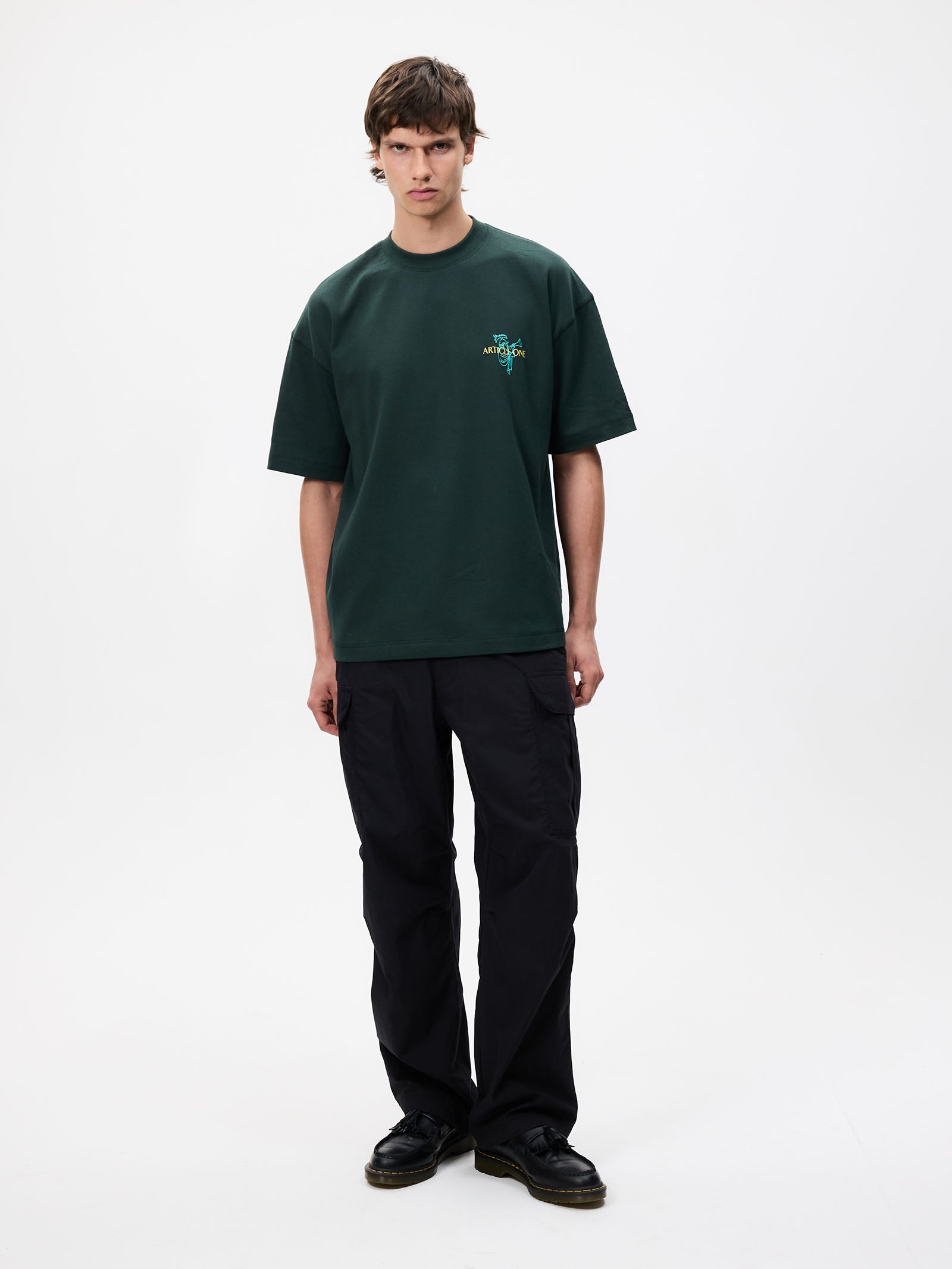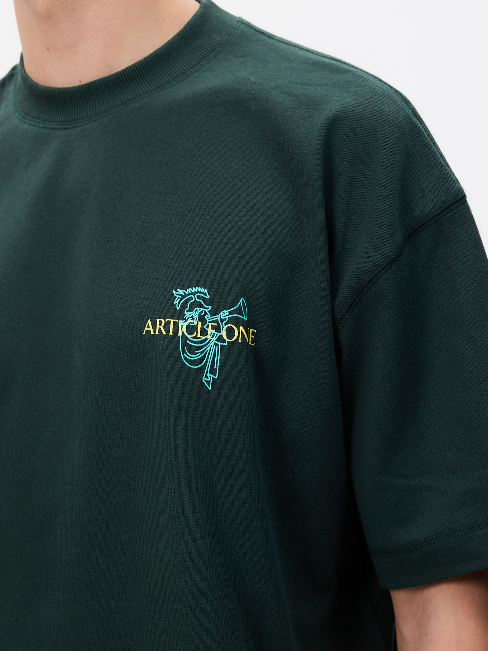 The Ceremony Tee in Forest by Article One is a refined take on the classic crewneck tee. Crafted from midweight, open-ended jersey, this tee offers a relaxed, boxy fit for a laidback silhouette.