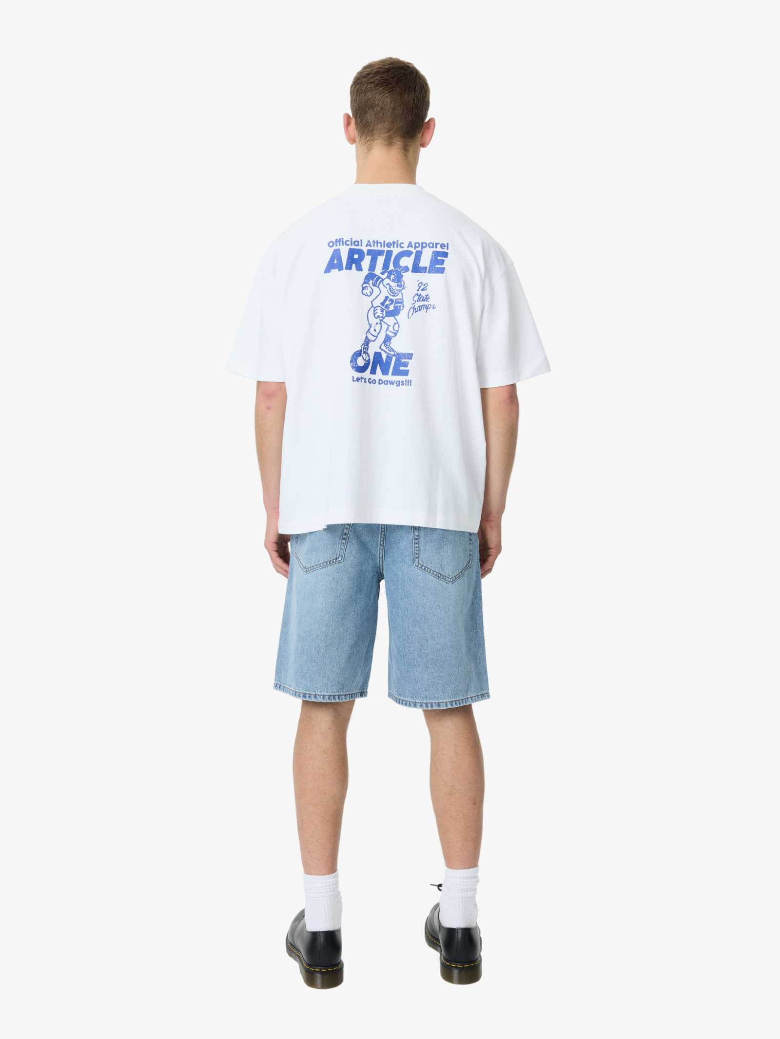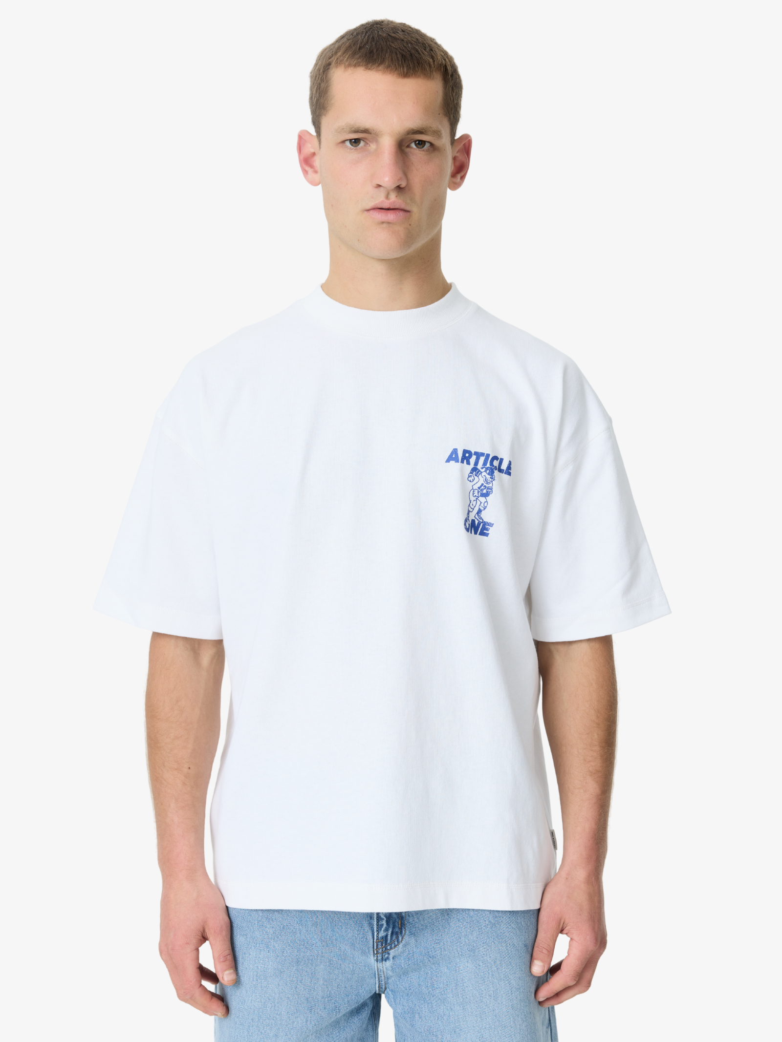 The Champs Tee in White by Article One is crafted in clean white hue. This tee features a relaxed fit, crew neckline, and subtle branding.