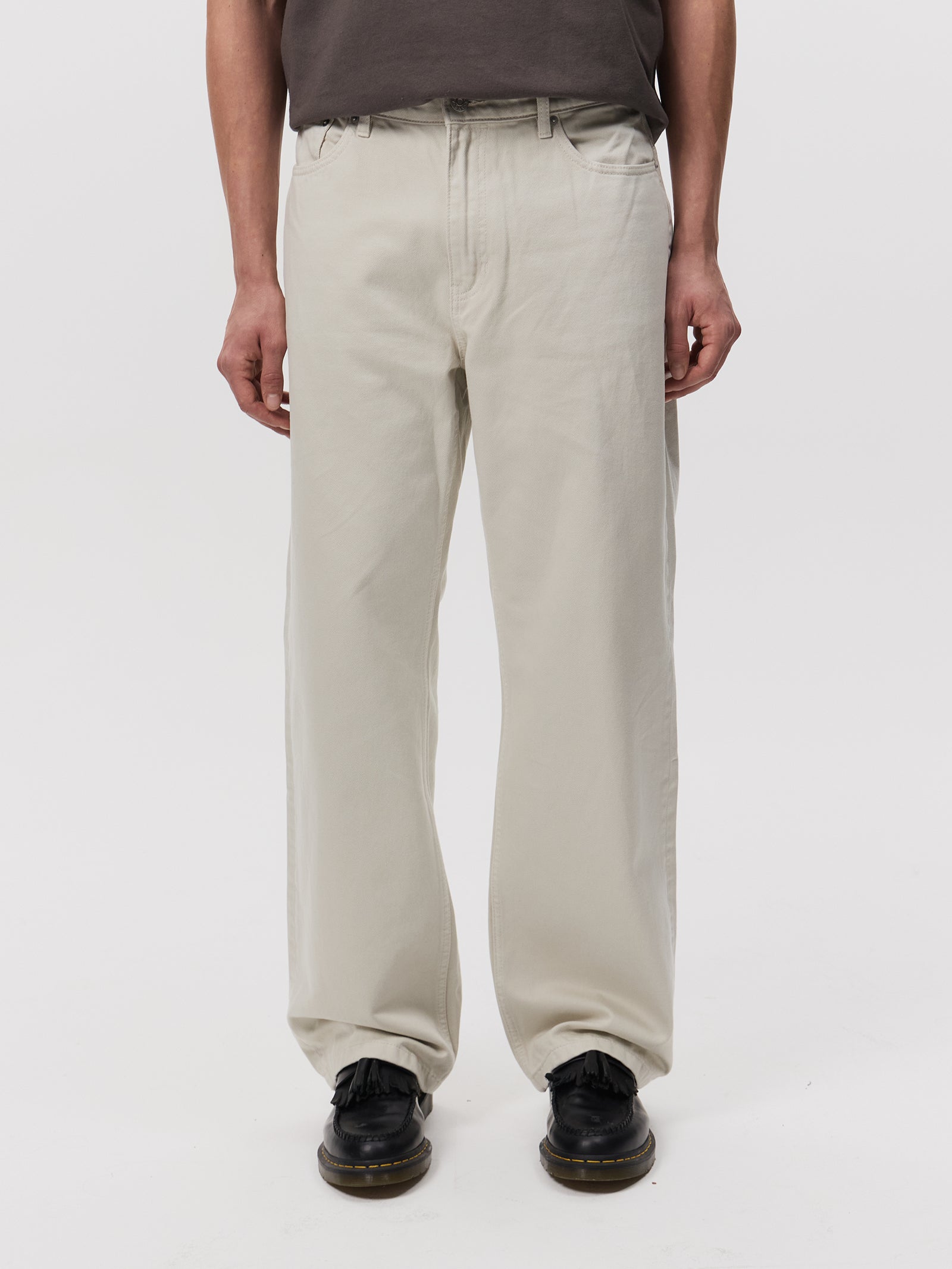 The Duff Jean in Ecru by Article One features a relaxed straight-leg fit and subtle fading. These jeans offer a vintage-inspired look and is finished with classic five-pocket styling and a button fly.