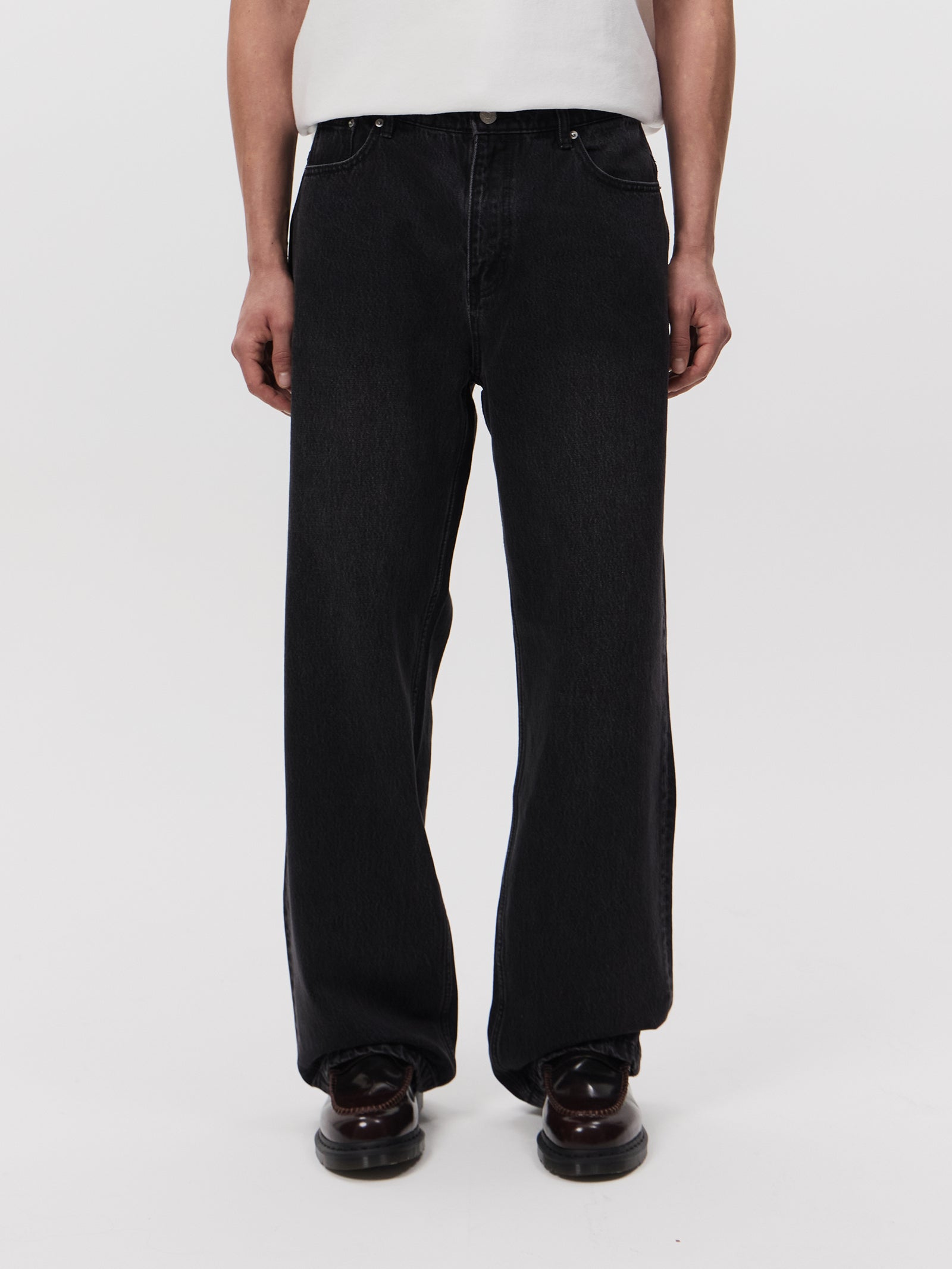 The Duff Jean in Vintage Black by Article One features a relaxed straight-leg fit and subtle fading. These jeans offer a vintage-inspired look and a classic five-pocket styling and a button fly.