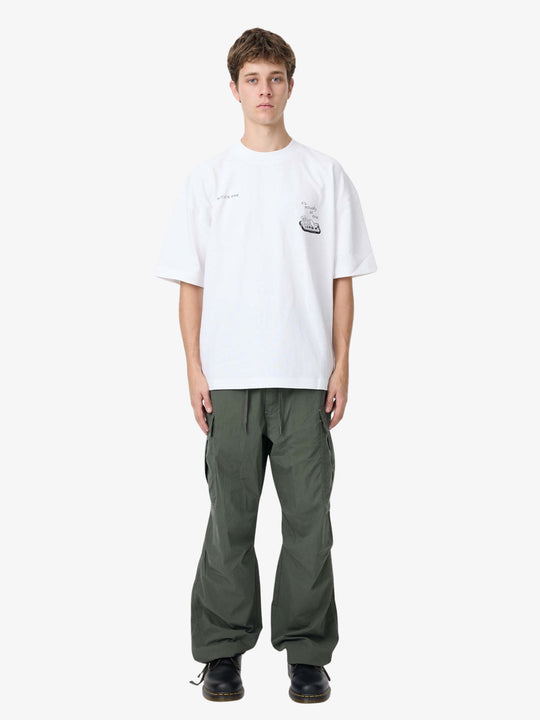 The Fine Tee by Article One is made from soft cotton jersey and designed with a straight, relaxed fit. This simple white short-sleeve shirt features a small conversational graphic print on the chest with text that reads, "it's actually so fine."