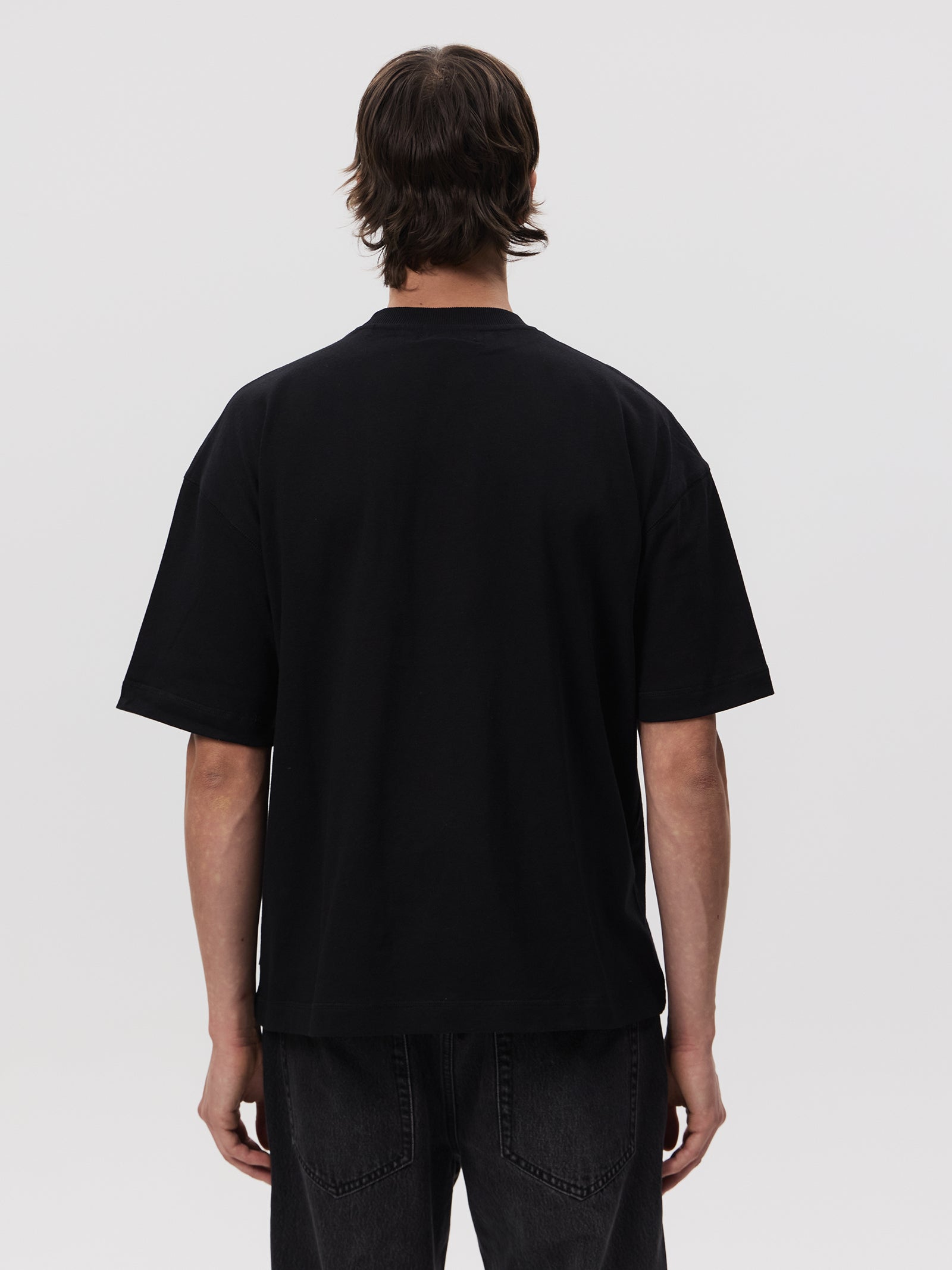 The Lockup Logo Tee in Black by Article One is crafted from premium 100% cotton. This tee offers an oversized fit and ribbed crew neckline.