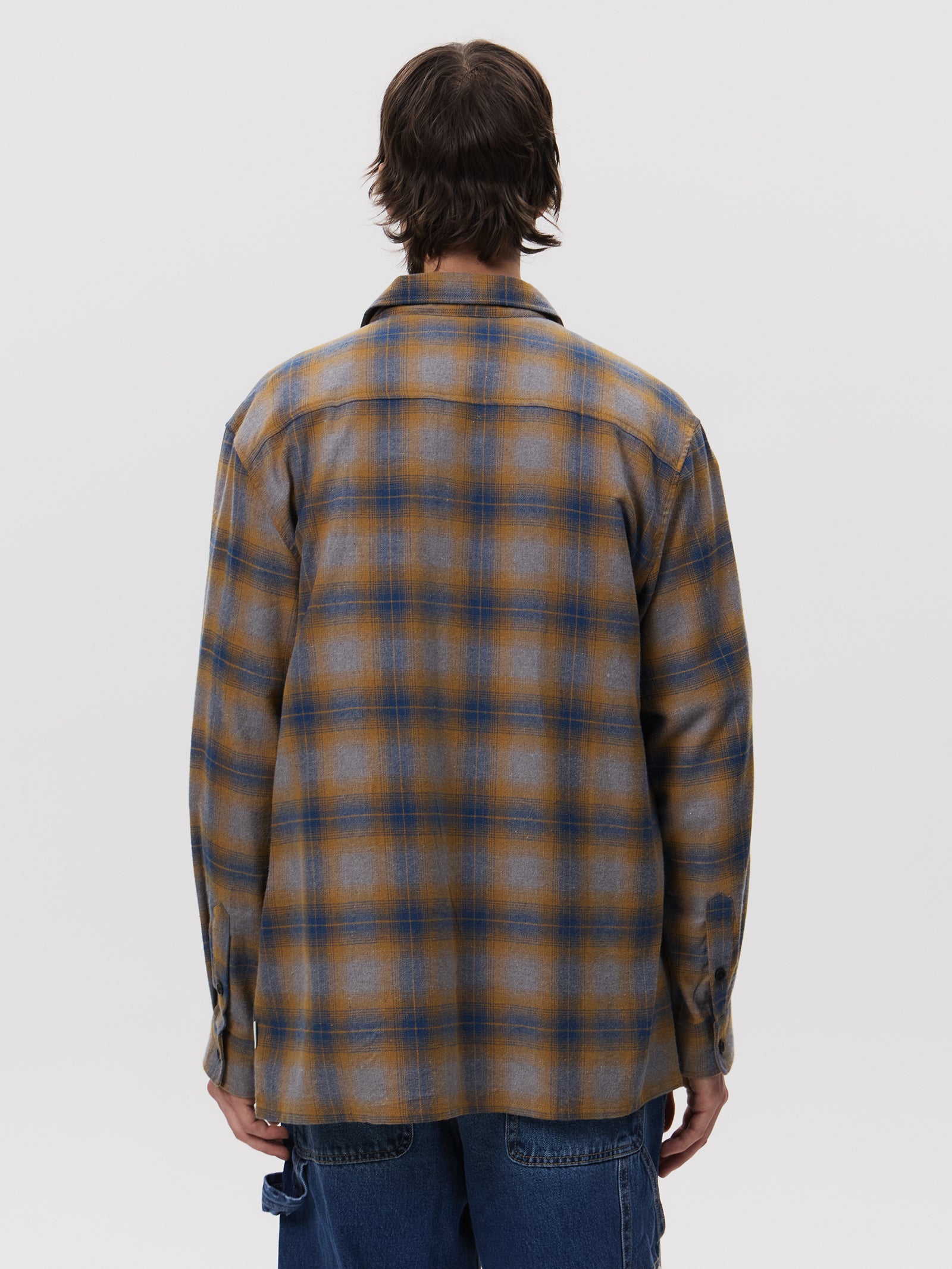 The Martin Flannel Shirt in Clay Check by Article One is designed in a relaxed, oversized fit. This shirt features a classic collar with button up closure.