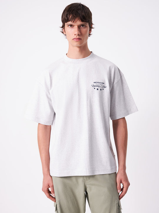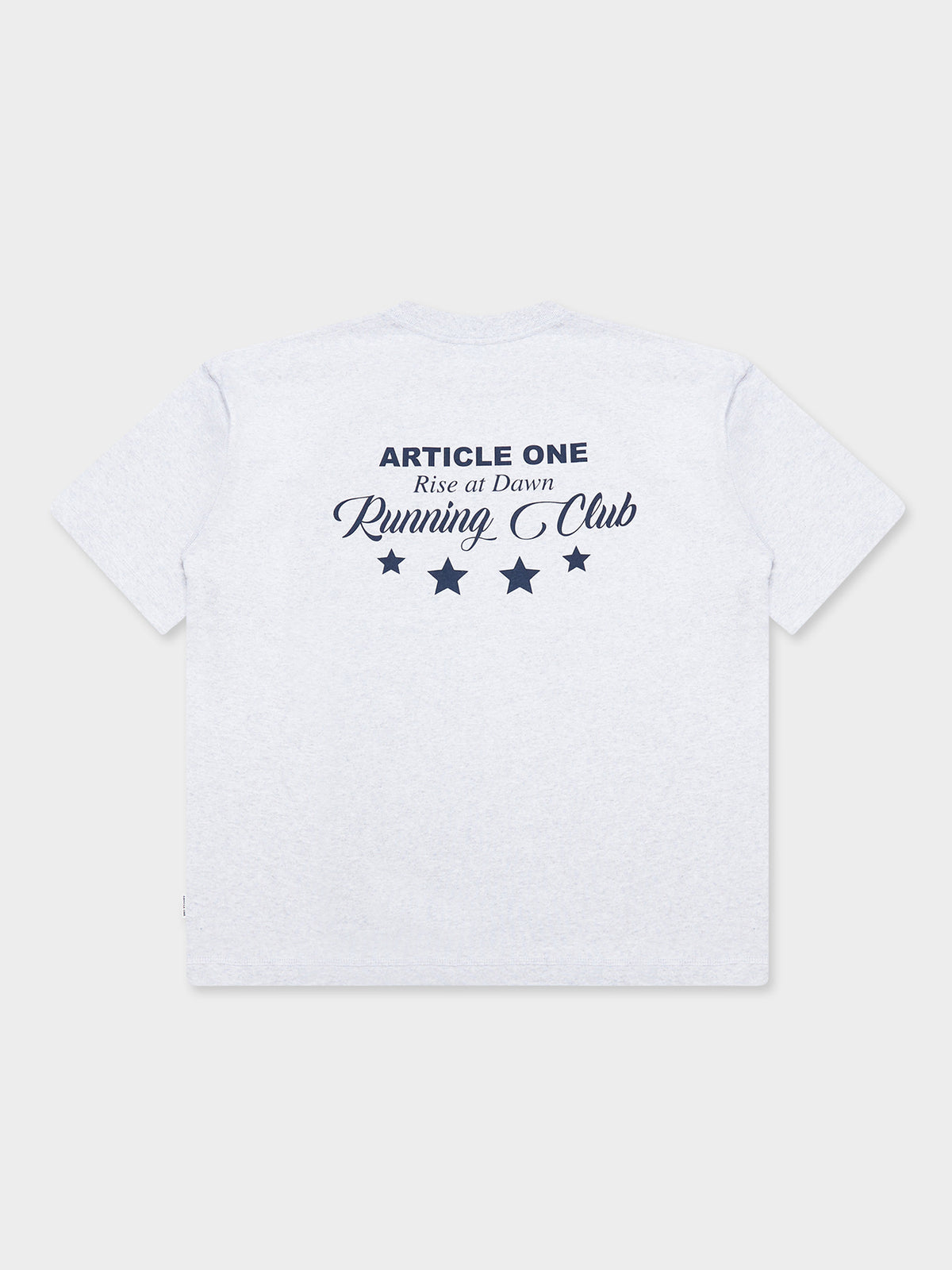 The Running Club Tee by Article One is designed with an oversized fit. This crewneck tee features a bold script logo on the chest and a statement graphic on the back.