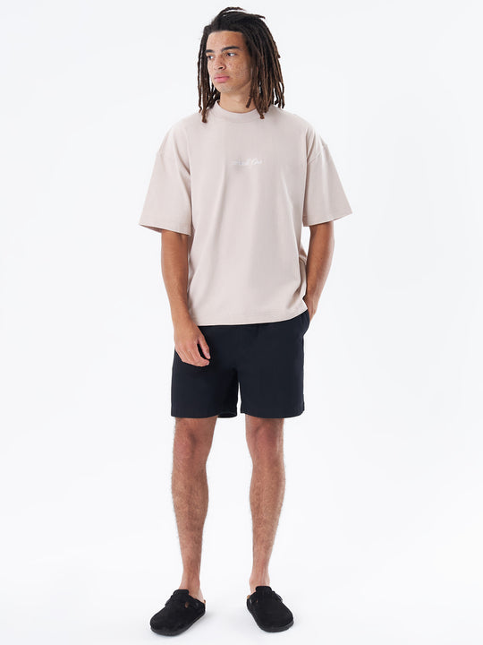 The Script Logo Tee by Article One is crafted from premium heavyweight cotton. This tee features a cursive script logo across the back and a centered logo on the chest.