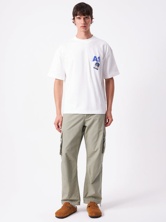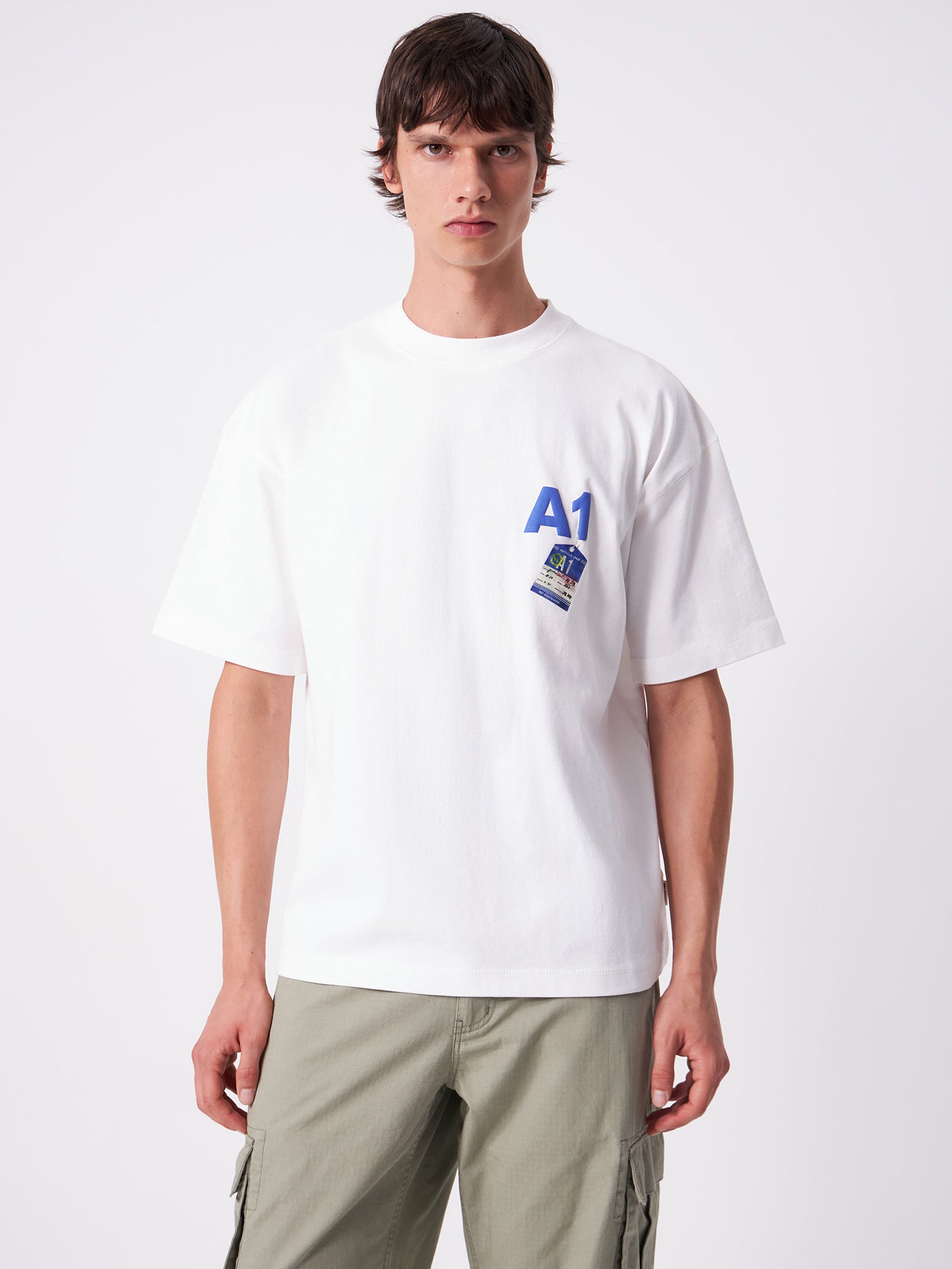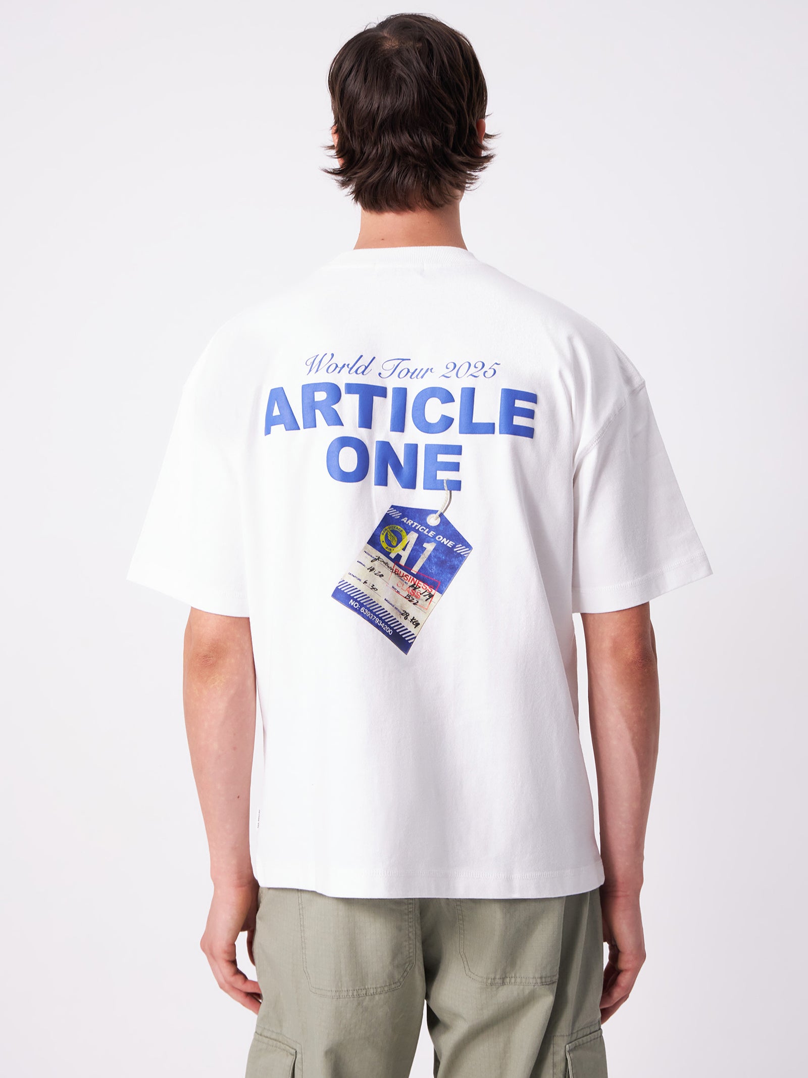 The Still On Vacay Tee by Article One features a bold script logo across the chest and a statement graphic on the back. This oversized crewneck tee delivers effortless style.