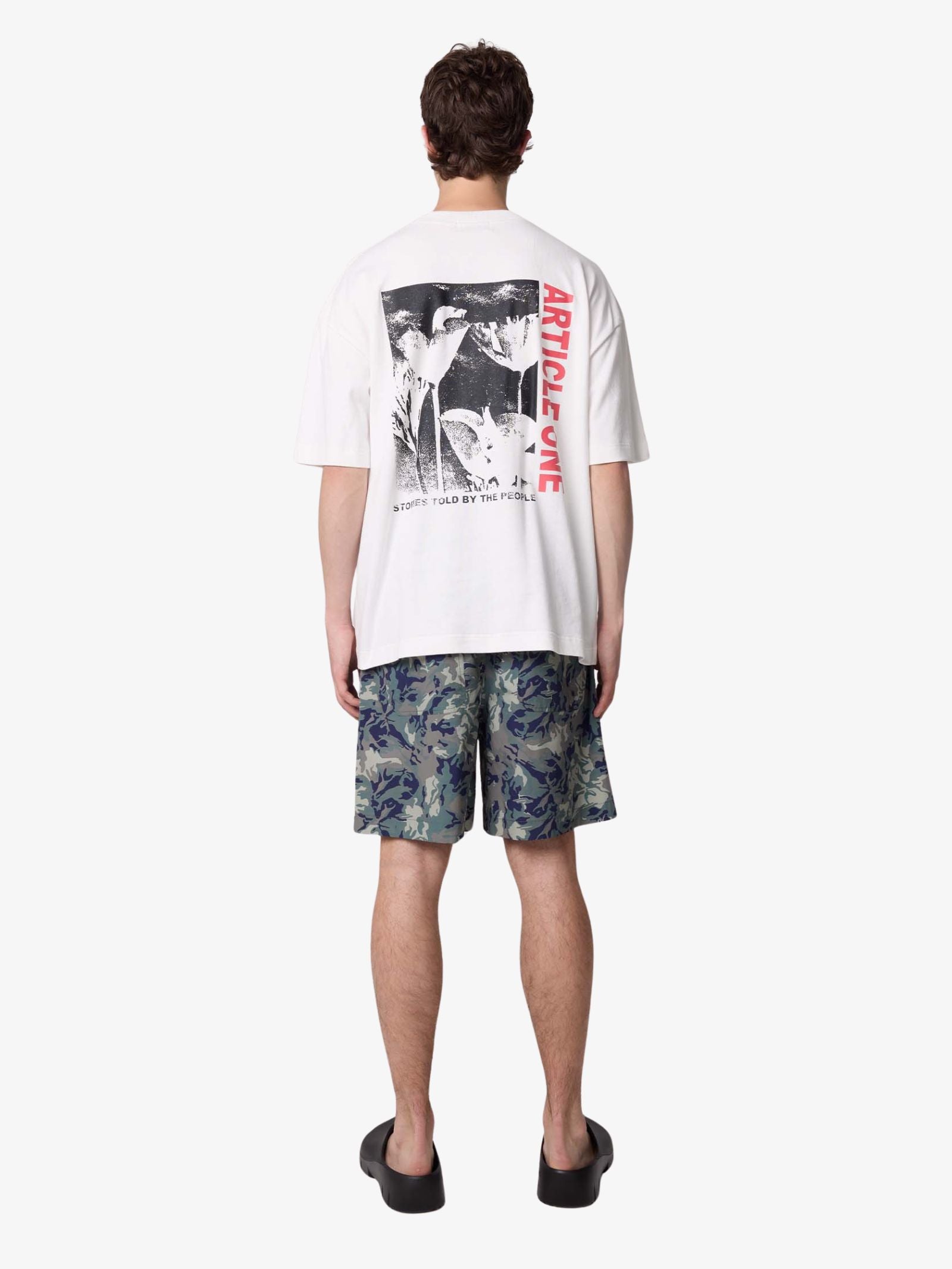 The Stories Boxy Tee by Article One features an oversized fit and classic crewneck. This tee is detailed with a bold graphic on the back and a subtle logo on the left chest.