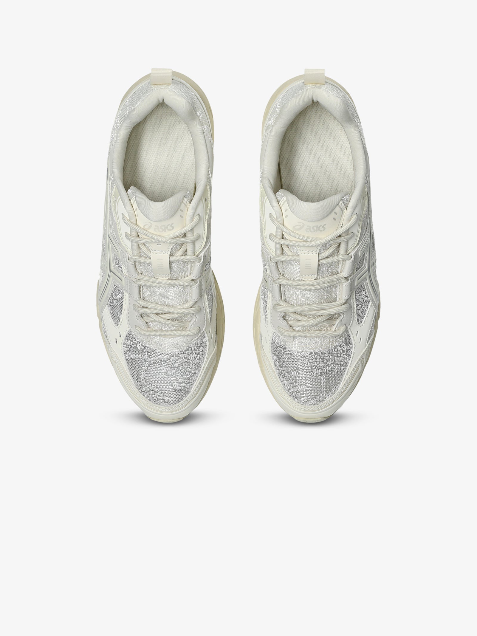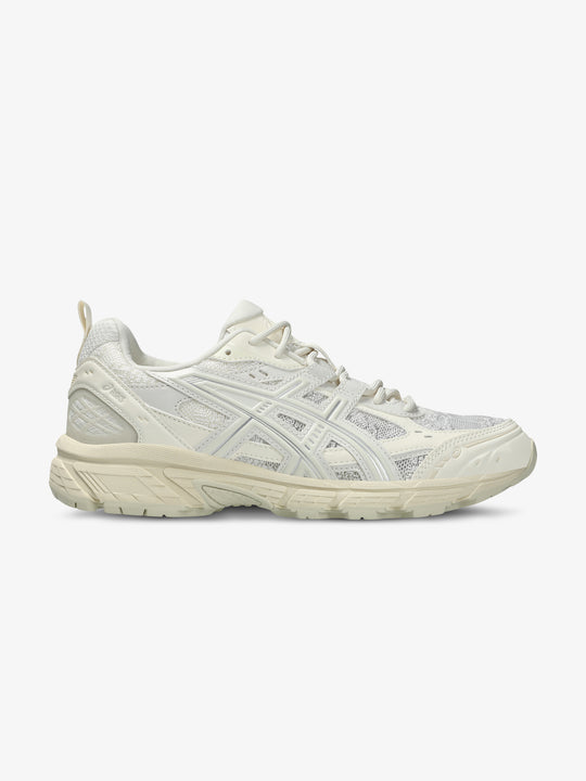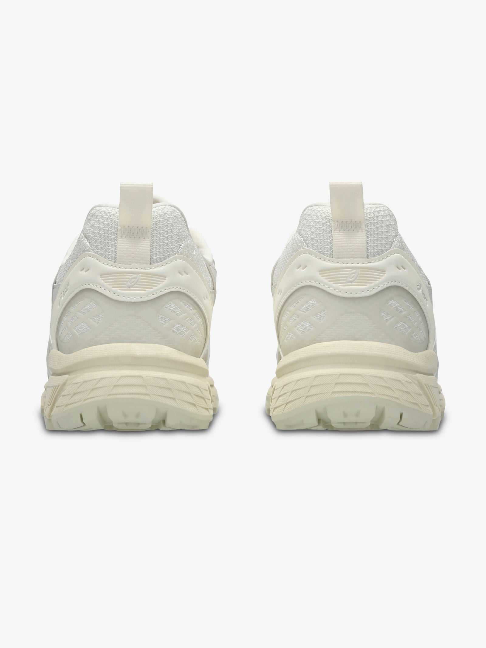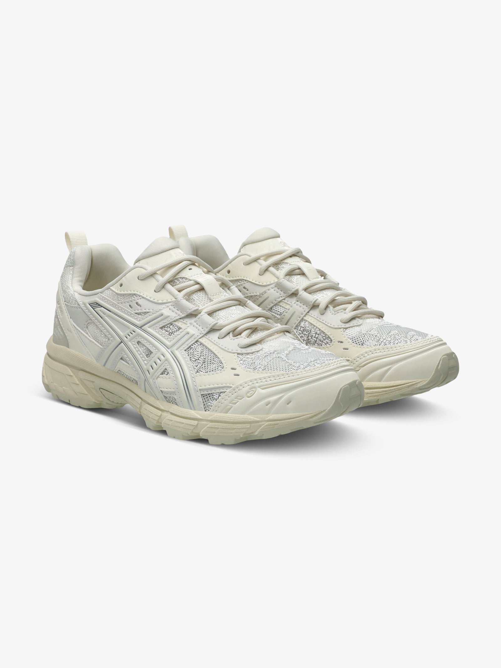The Gel-Nunobiki Sneaker in Cream/Pure Silver by Asics features synthetic overlays that enhance durability. This sneaker has Rearfoot GEL technology that provides shock absorption.
