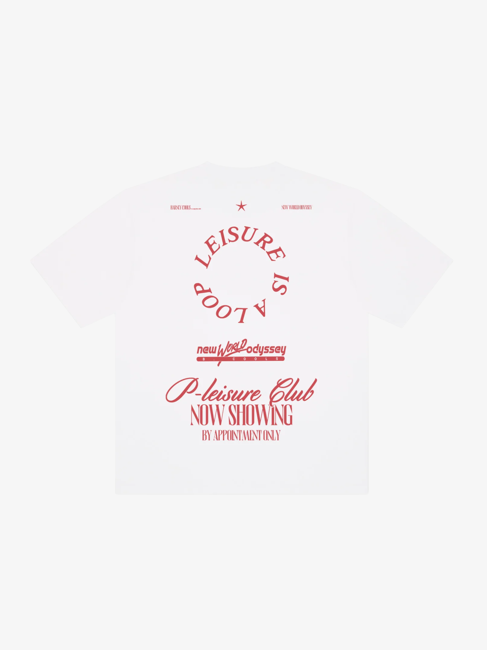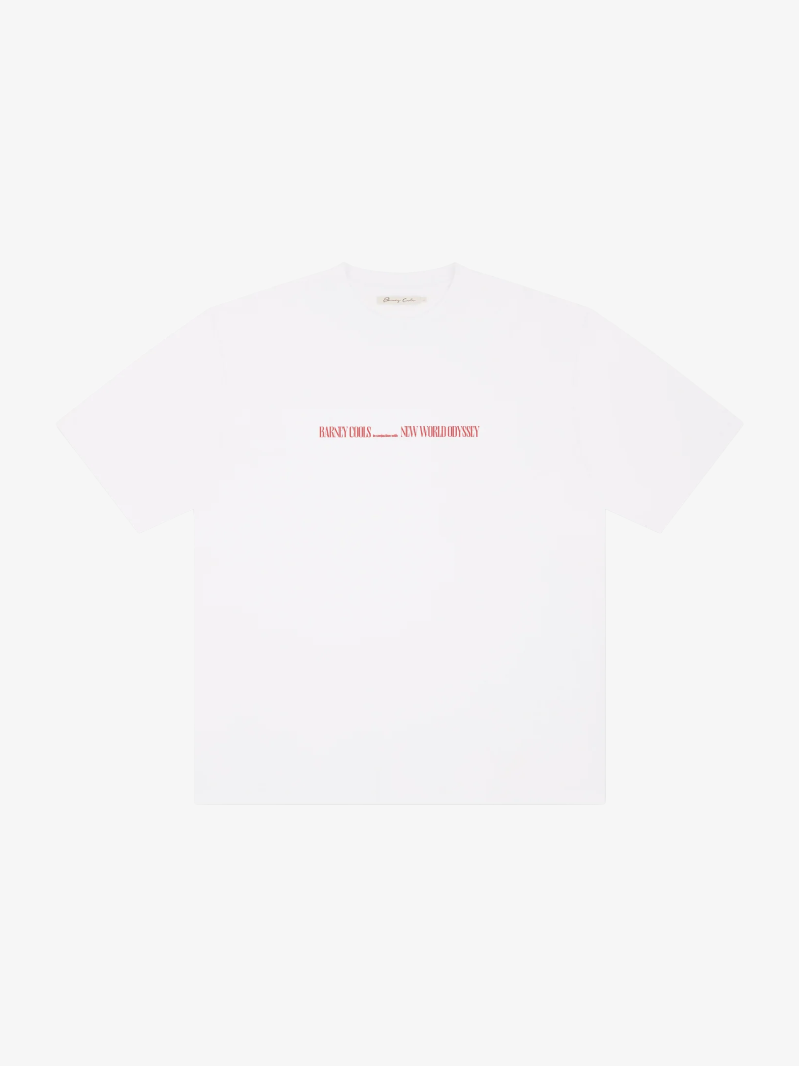 The Loop Tee in White by Barney Cools is a relaxed, boxy fit tee with a thicker neckline. It is crafted from heavyweight 260g cotton finished with a light puff print graphic.