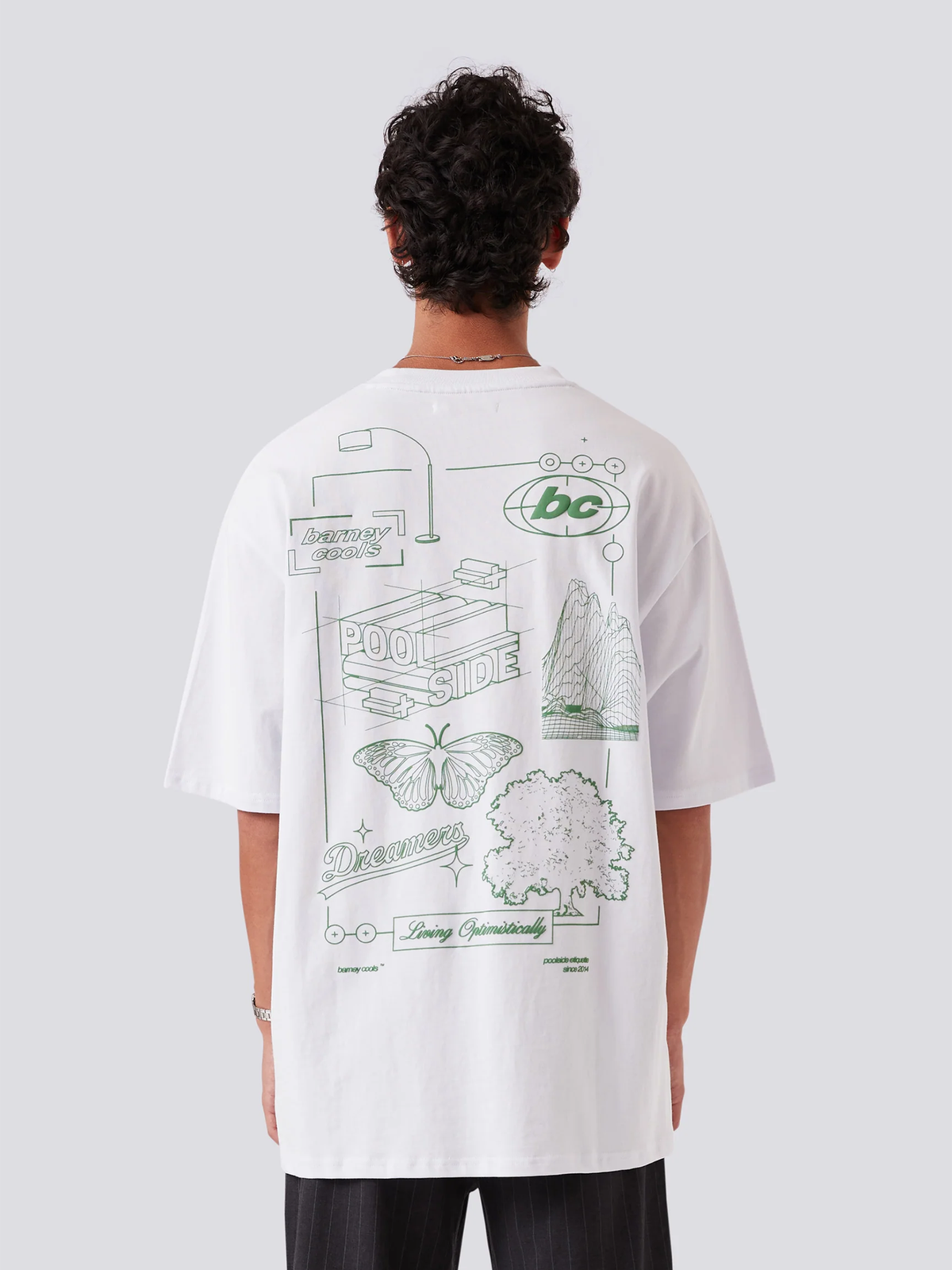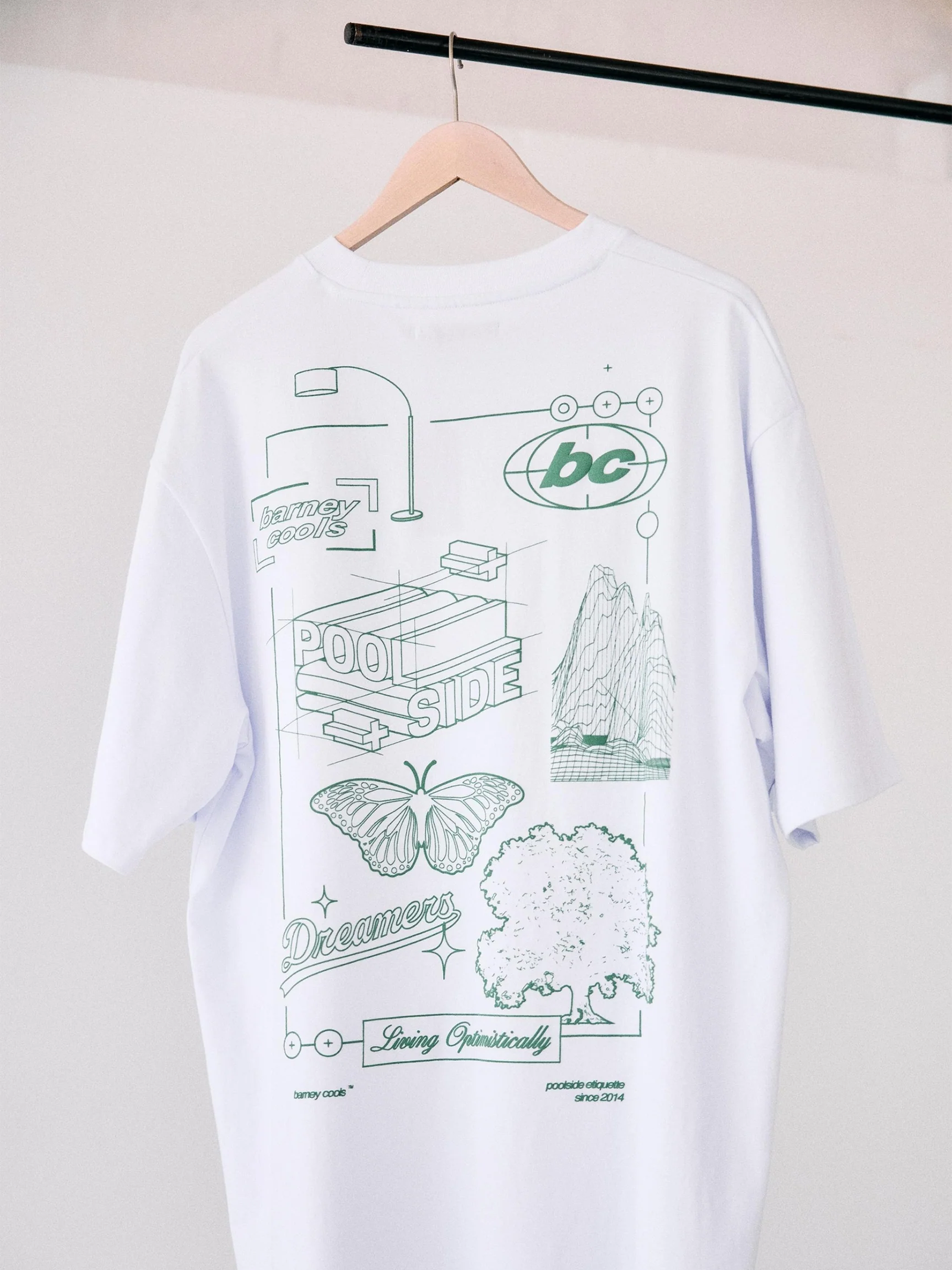The Streetscape Tee in White by Barney Cools is crafted from 260g 100% cotton jersey. This tee offers a relaxed, oversized fit with a thicker neckline for a structured look.