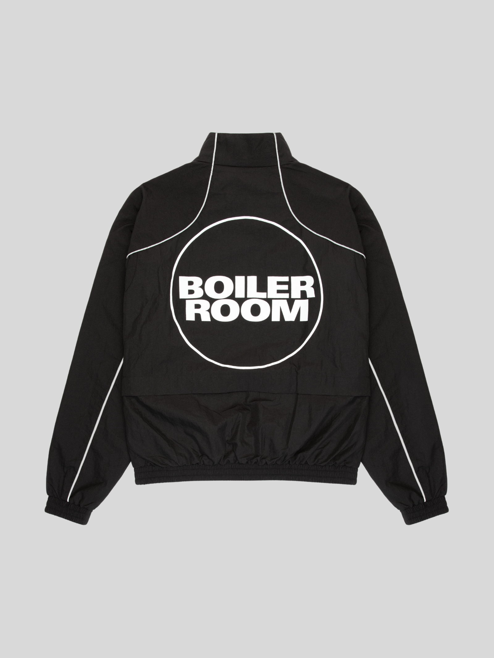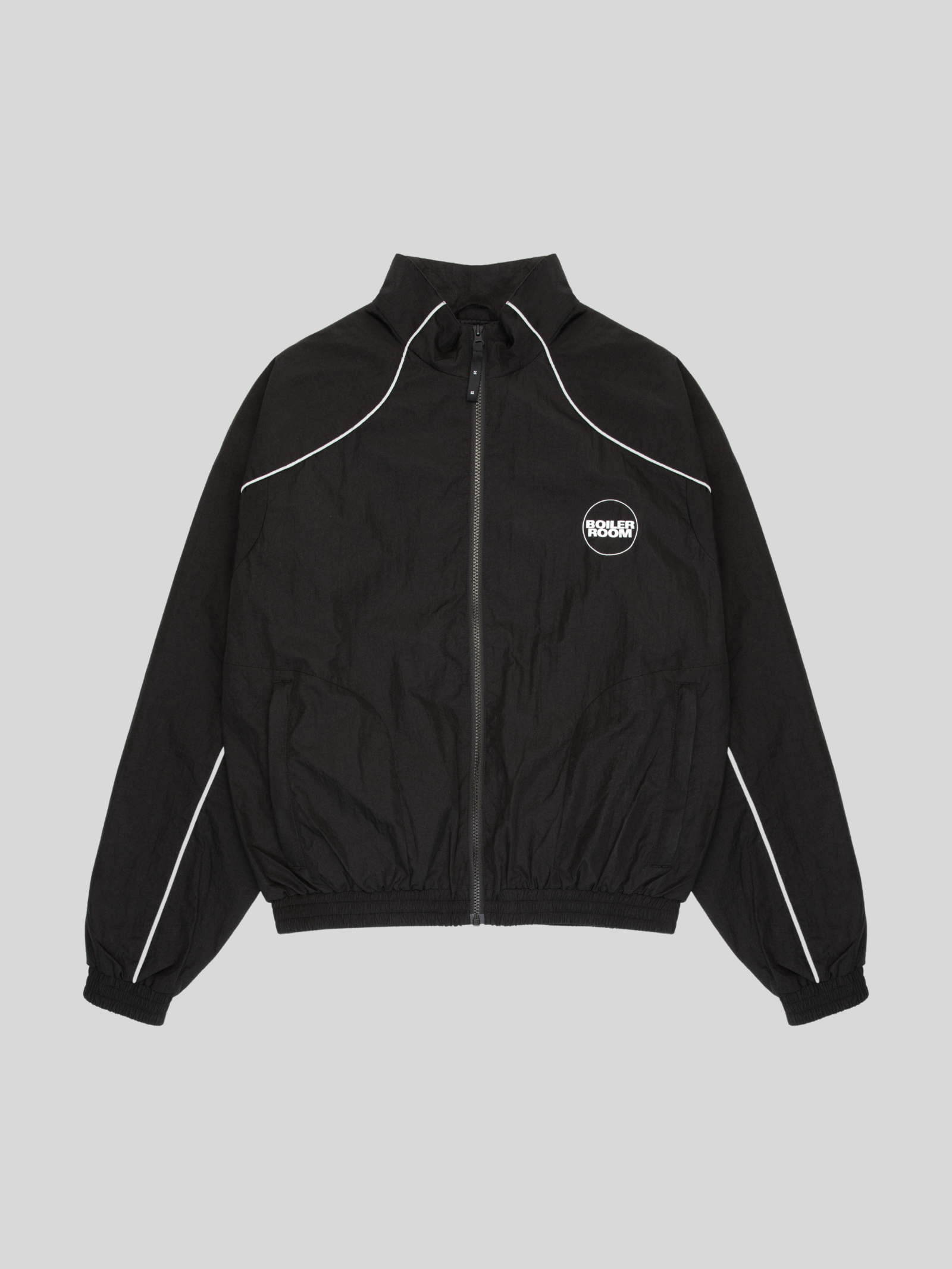 The Logo Shell Track Top in Black by Boiler Room is cut from a lightweight, water-resistant shell. This zip-through jacket features a high neckline and elasticated cuffs for a secure, comfortable fit.