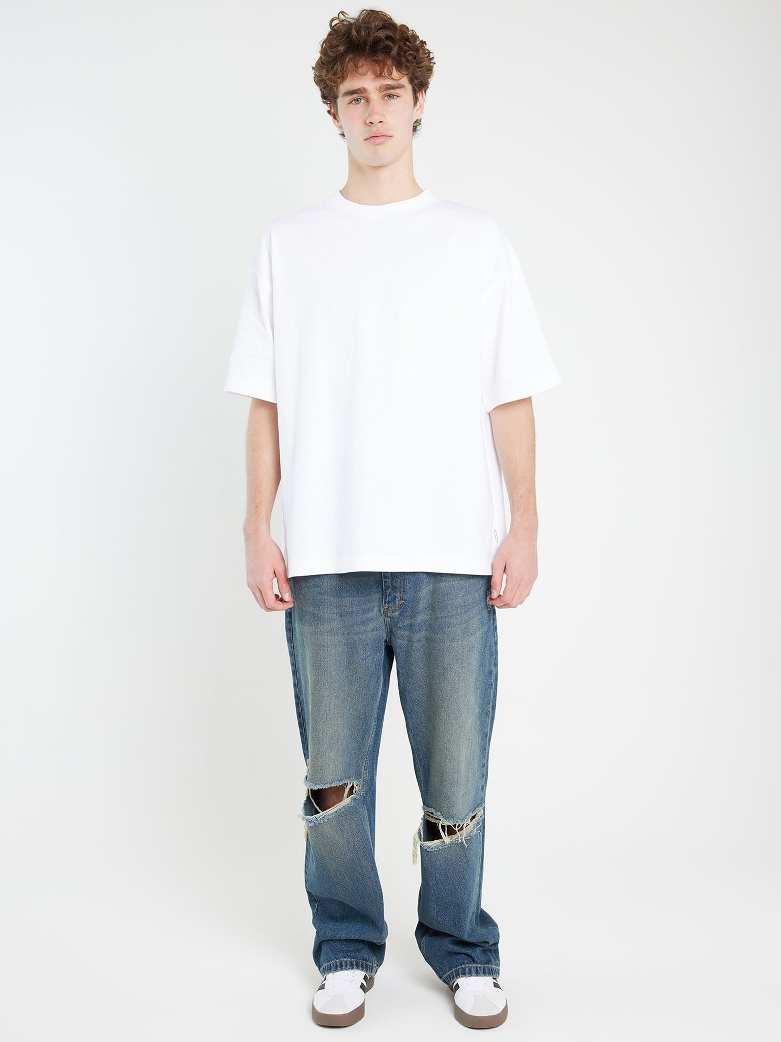 This Box T-Shirt boasts a streamlined design, featuring a classic crew neckline and a relaxed fit. Crafted with high-quality materials, it offers a premium feel that's perfect for versatile styling. The straight hemline and natural stretch add to its comfortable and practical appeal.