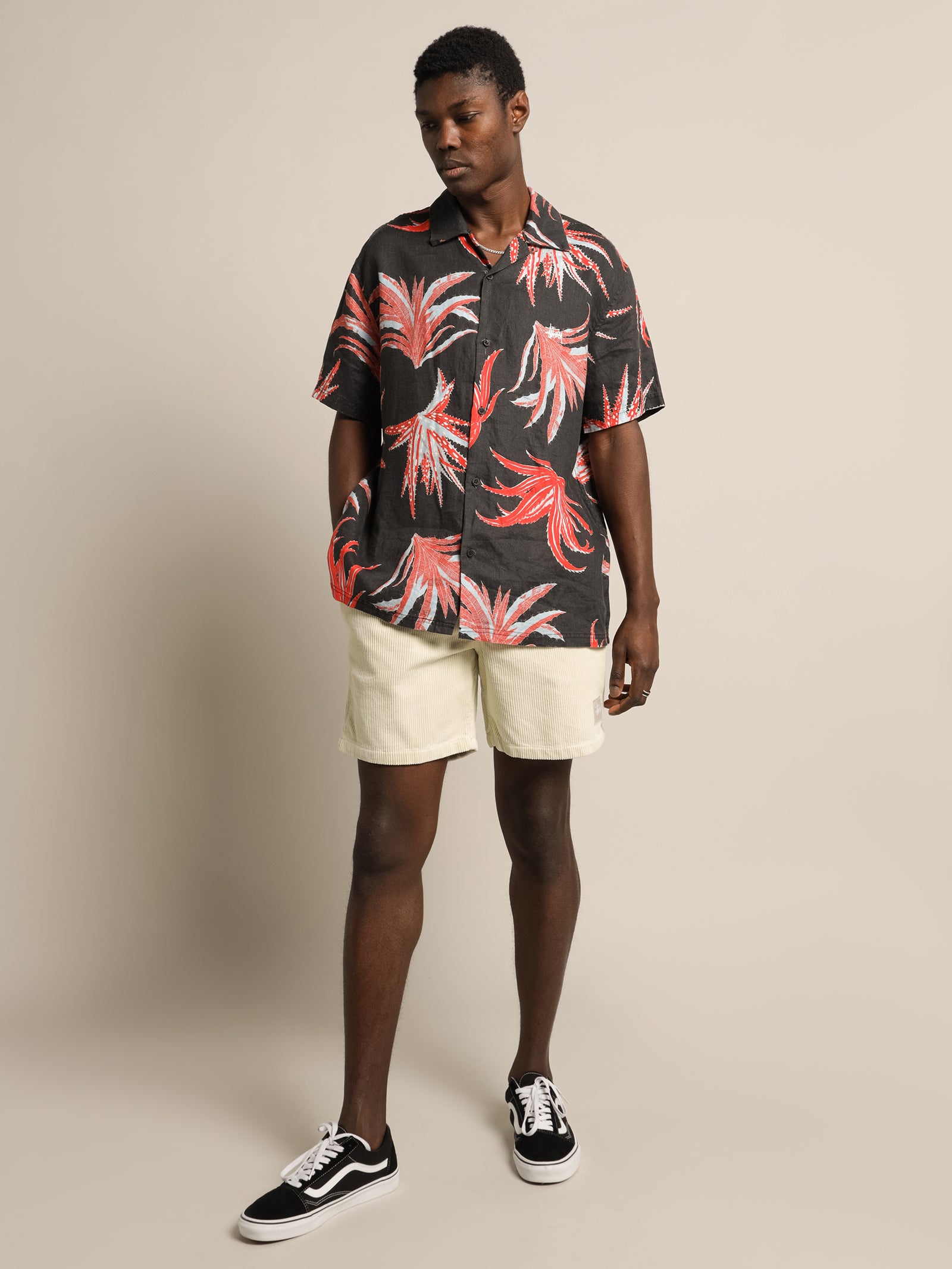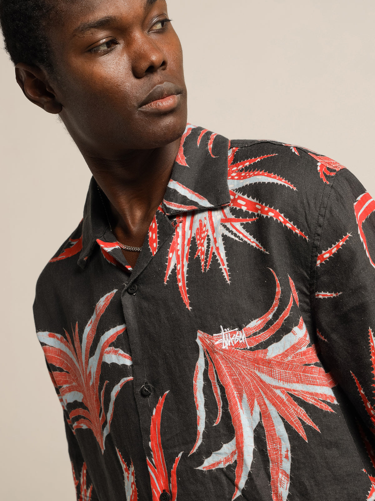 Very nice fabric. Print is vivid. Generous fit. Good for afab bodies too. Looks great with denim and cord.