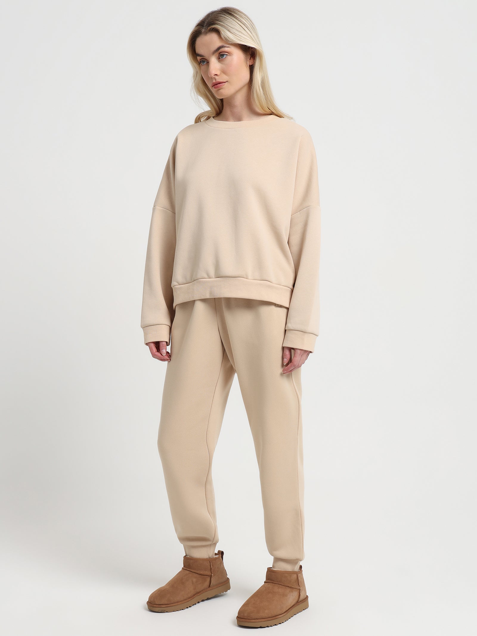 Super comfortable, warm and love the colour. Runs true to size. Purchased with the matching stone sweat and love the look.