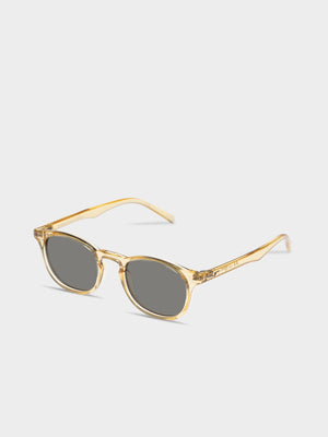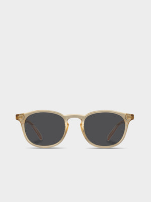 Finished in a vintage translucent tan frame paired with contrast dark lenses.