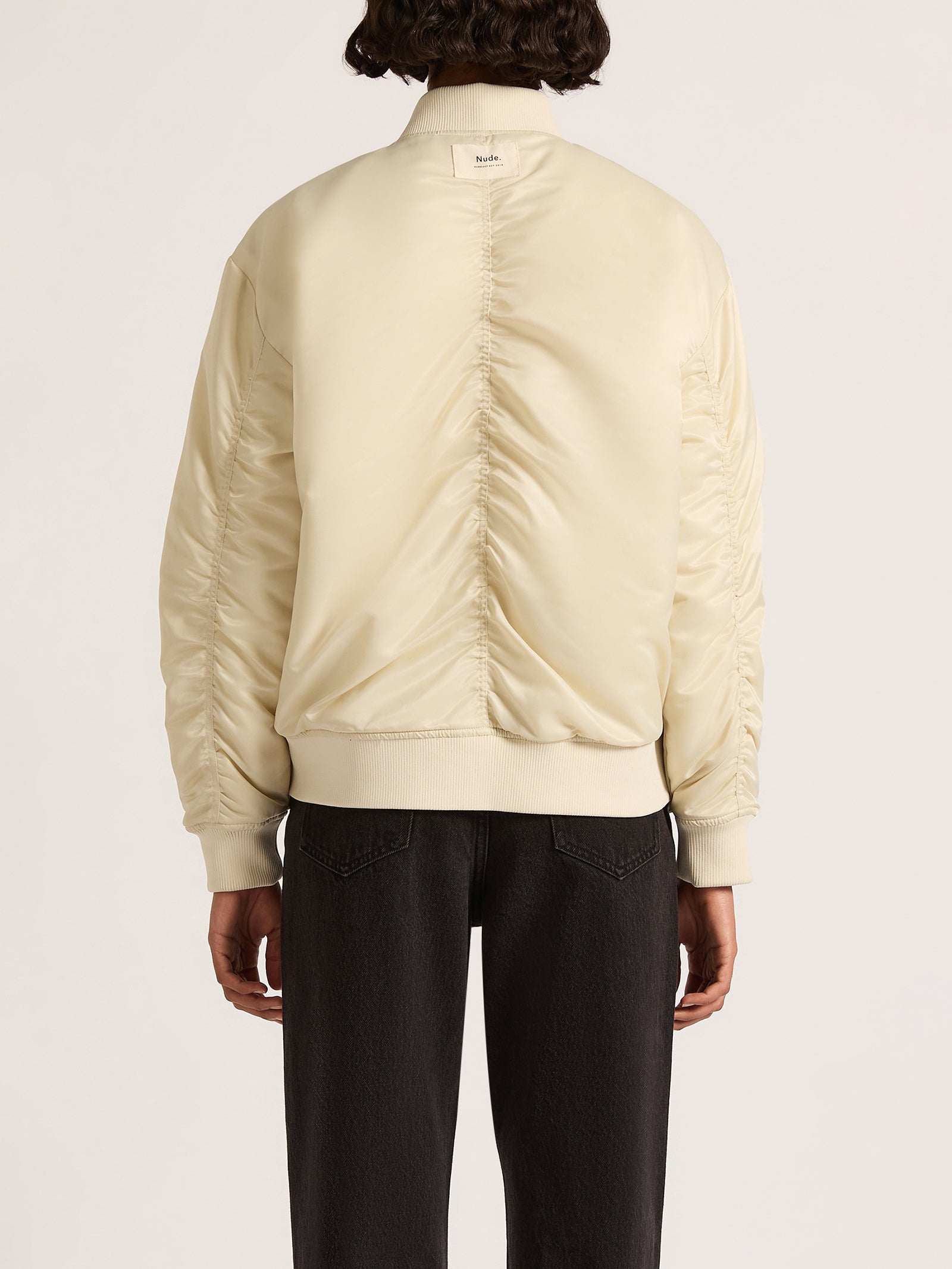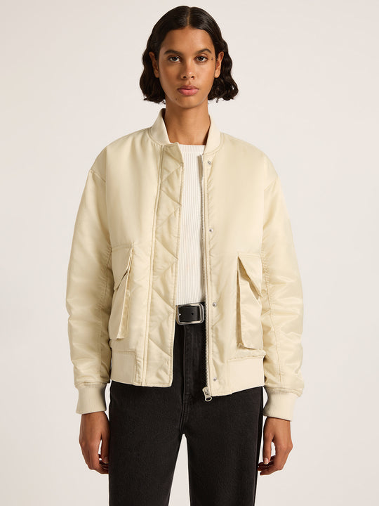 Crafted from recycled nylon, the Crawford Bomber features an oversized fit with drop shoulders and a long length. It also includes front patch pockets and a nude patch label on the center back. The sleeve cuffs and hem are finished with rib detailing and the jacket is fully lined.