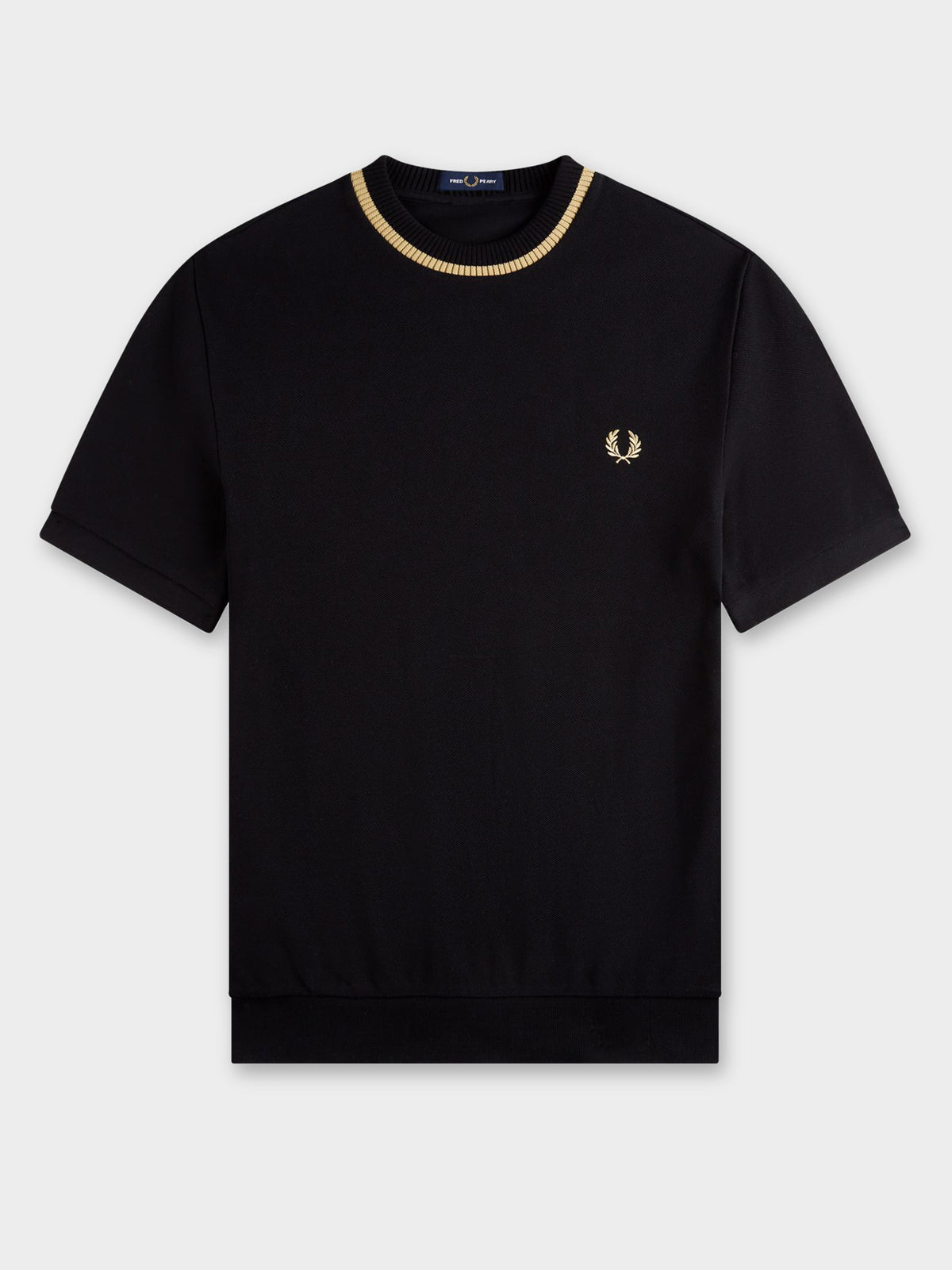 The cotton piqué construction of this Crew Neck Pique T-Shirt features contrast trimming at its ribbed crewneck, ribbed cuffs and hemline. With an embroidered Fred Perry logo and a regular fit, this shirt is composed of 100% cotton.