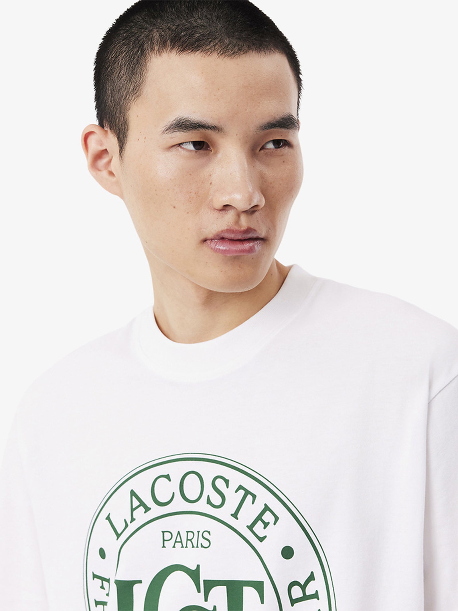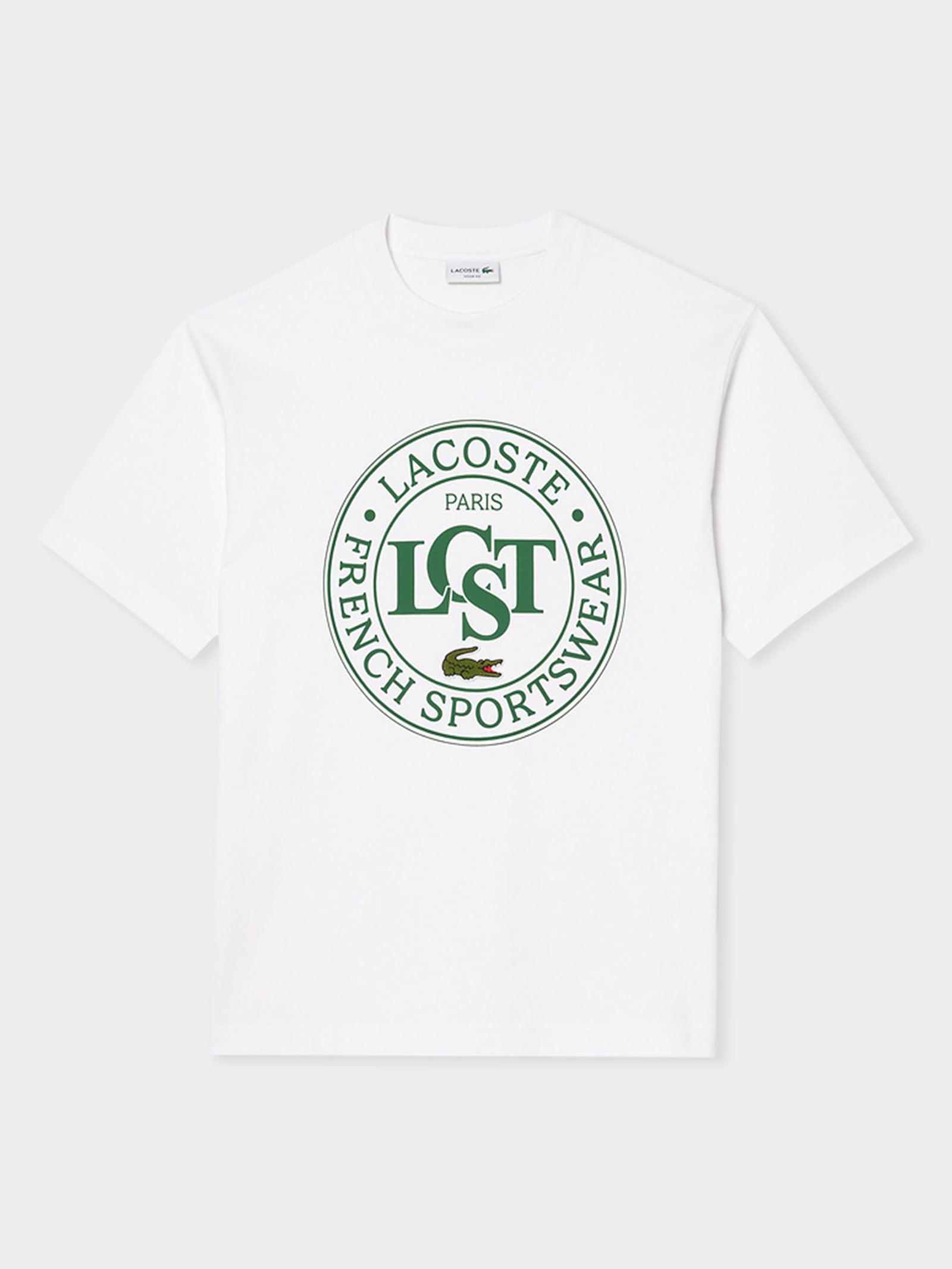 Made from thick organic cotton jersey and recycled cotton, the Croc Signature Varsity T-Shirt by Lacoste delivers both comfort and sustainability. Its loose, oversized fit with dropped shoulders creates a relaxed, modern silhouette, while the bold printed shield at the center adds a sporty, heritage-inspired touch. A timeless essential that blends classic varsity styling with contemporary ease.