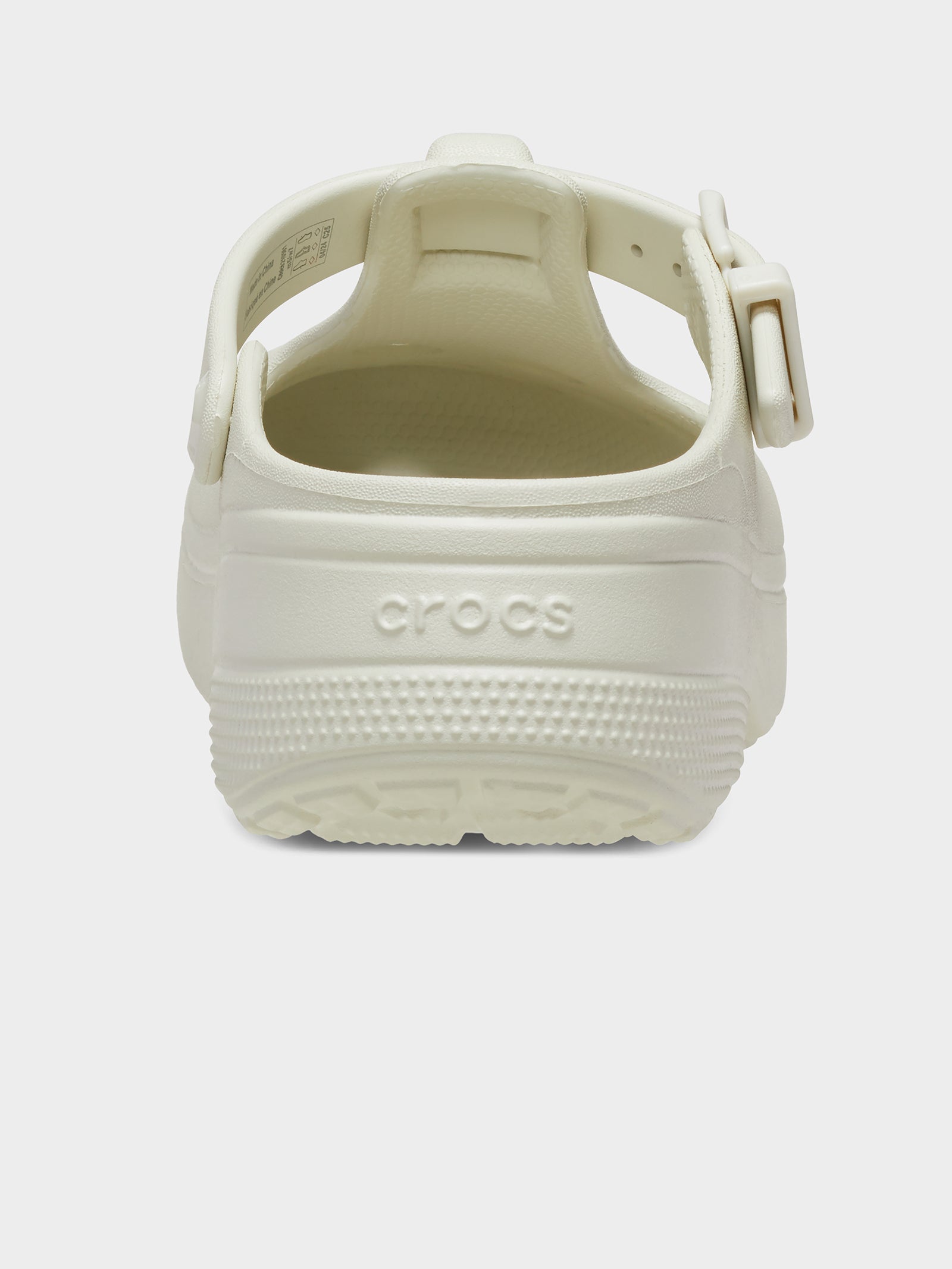 The Mary Jane Clog in Linen by Crocs features a slight platform heel and an adjustable front strap for versatile wear. This clog has feminine lines and trend-right appeal.