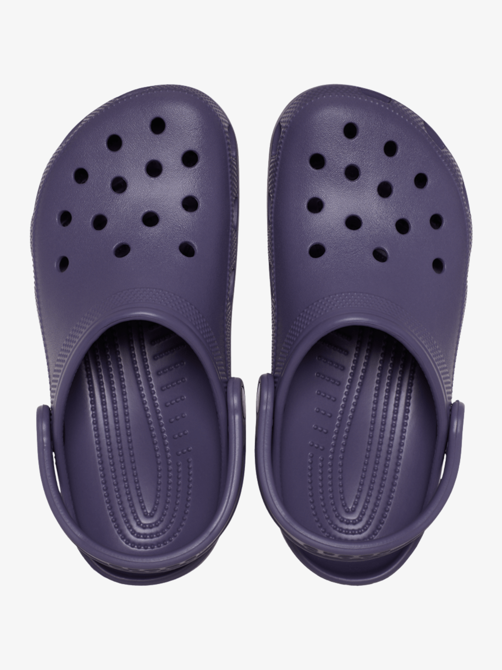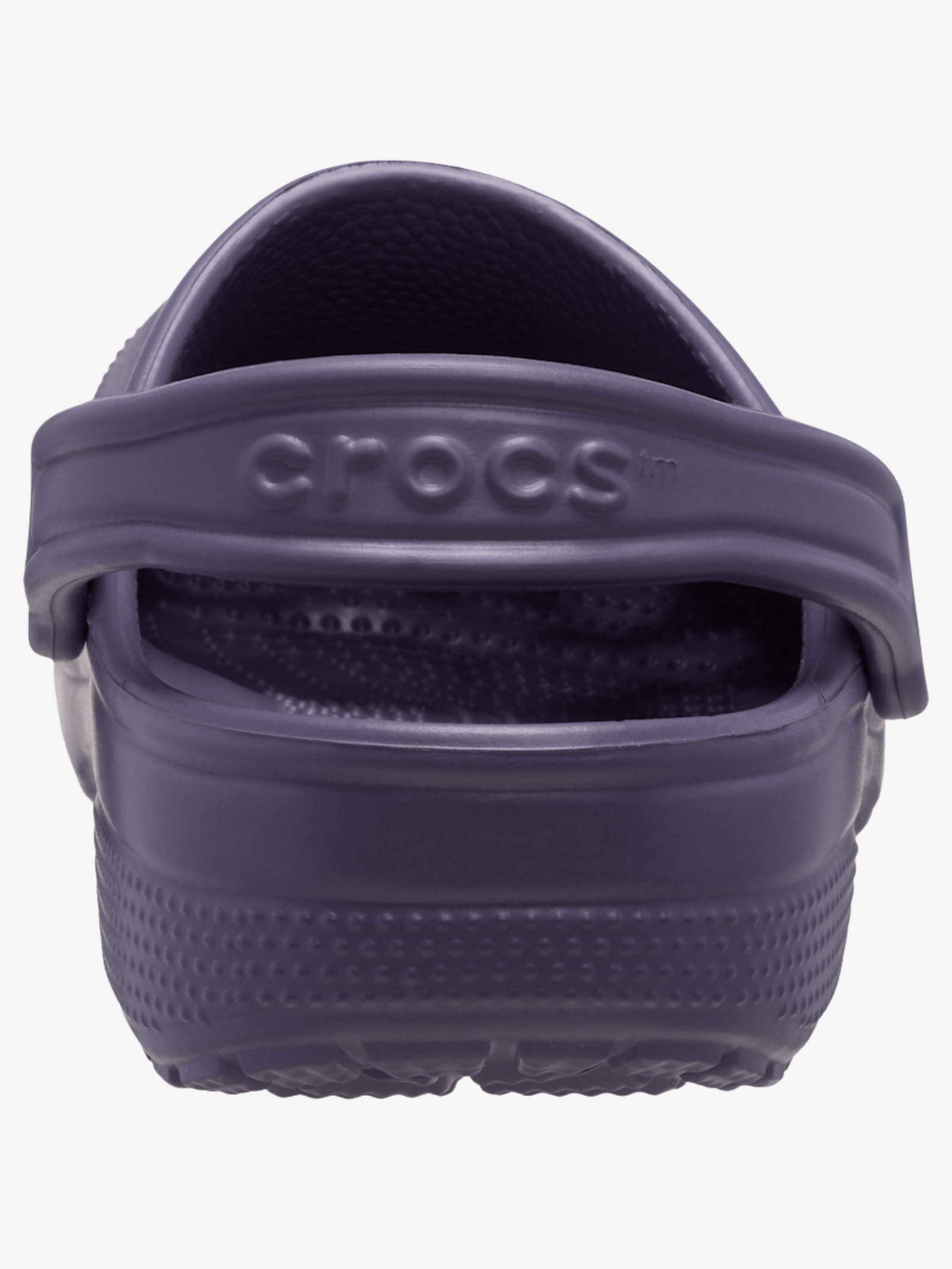 The Classic Clog in Nightshade by Crocs is molded entirely from lightweight Croslite™ material. This clog features buoyant, odor-resistant, and an ergonomic footbed.