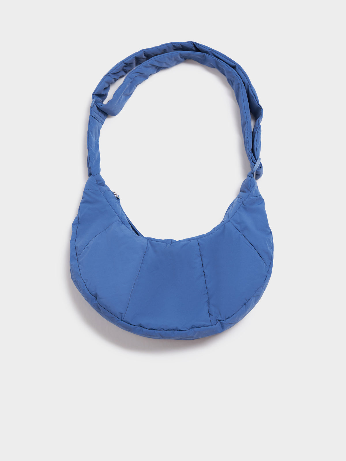 This Croissant Bag features an adjustable strap and a spacious main compartment, making it perfect for carrying your phone and wallet essentials. Its slim shape allows it to be worn comfortably below the shoulder.